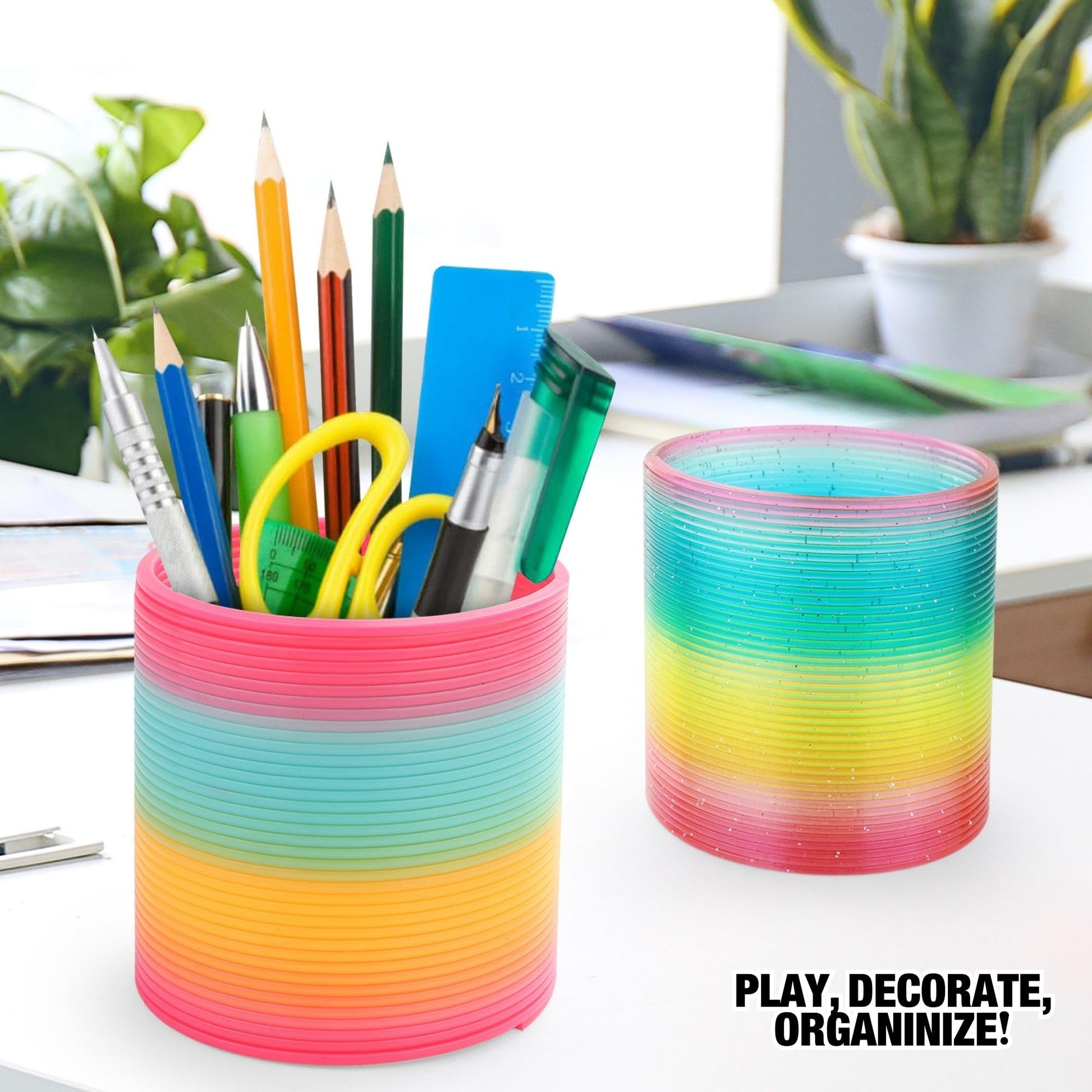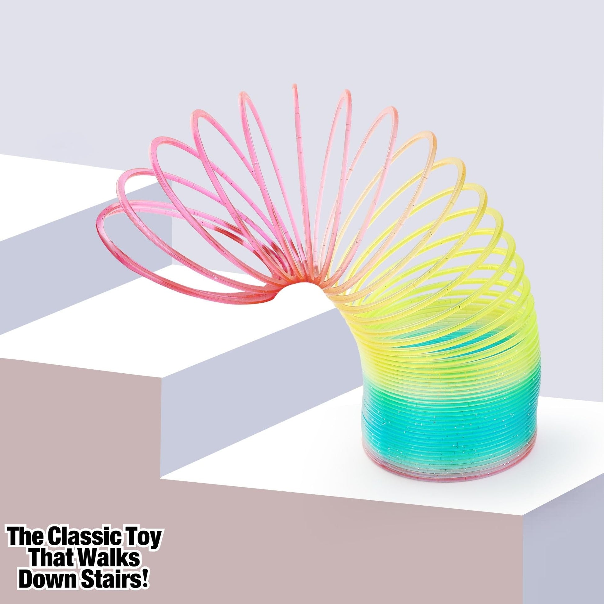 Bundle pack: Includes six large-sized plastic rainbow springs, a classic novelty toy that provides fun for both kids and adults | Vibrant colors: Each coil features a bright mix of multi-colors; includes three glitter and three non-glitter neon rainbow springs, perfect for eye-catching play | Great value: Save compared to major brands; ideal for birthday party supplies, beach parties, and kids party games | Safe and durable: Made of weatherproof plastic, these 4-inch diameter, 4-inch tall rainbow springs are safety-tested for worry-free play | Party favors: A great addition to gift bags, goody bags, and pi