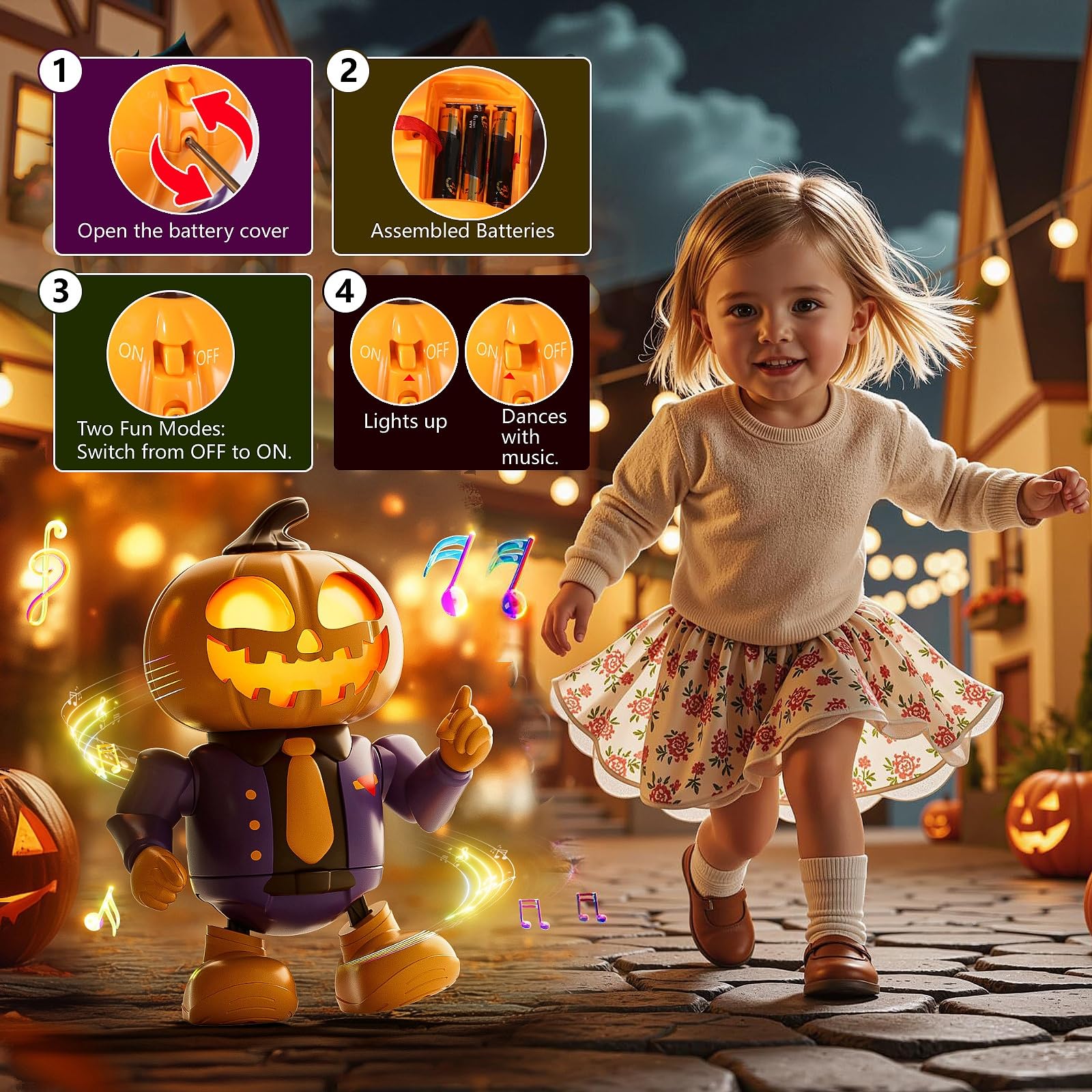 Logth Halloween Themed Toys Pumpkin Dancing Robot - Plays Spooky Music and Lights Up Eyes Fun Interactive Sensory Toy for Kids 3-7 Toddler & mature-themed Gifts Perfect Halloween Party Decoration