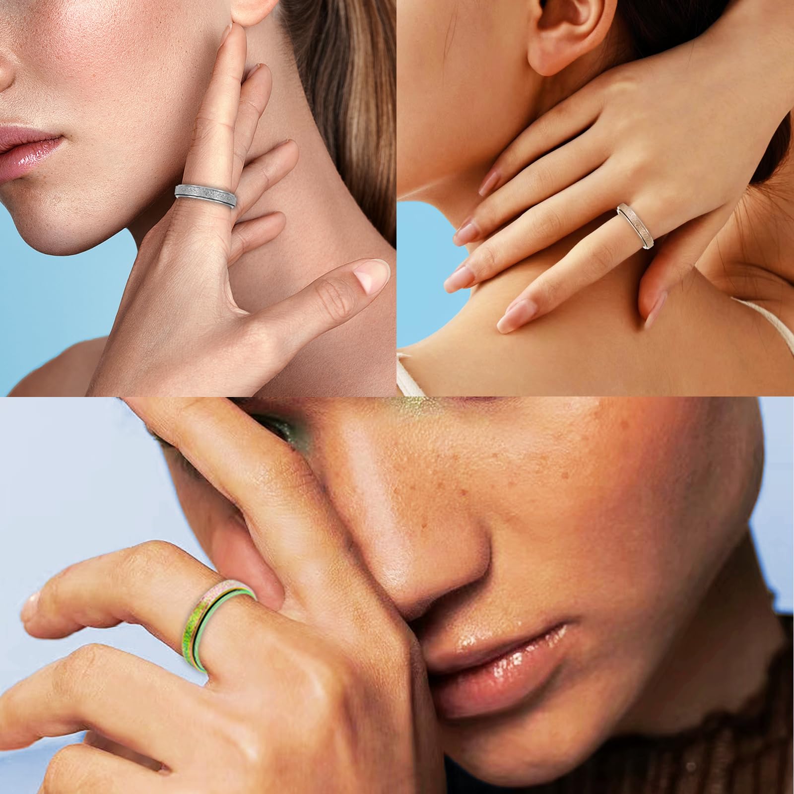 SPINNER RING FOR WOMEN>>>:Spinner ring can relieve the stress, anxiety, and insomnia of women.When you feel irritable,you wear this Spinner ring,which can make you calm down instantly.ideal for relieving anxiety and tension when on work,meetings,parties,dates,and other occasions,let you relax slowly and think calmly... | PREMIUM QUALITY >>>:4.0mm Width;Sandblasted spinner ring; Handmade Mirror-shiny finish;Our spinner rings are made of High-quality and Safe material stainless steel;Solid,sturdy and durable;Hypoallergenic.Best plating technology Never turn your finger green. | UNIQUE DESIGN>>>:Gently rotate with your thumb,and can rotate 2-3 laps smoothly.anxiety spinner outer ring dotted with colored dog paw-printed drip oil,wearing between the fingers,like the intimate companionship of the budding pet. | THE PERFECT GIFT>>>:The fidget spinner ring comes with a exquisite case and a velvet bag.Great Gift for your Wife, Daughter,Mom,Aunt,Sister or Friends like mother