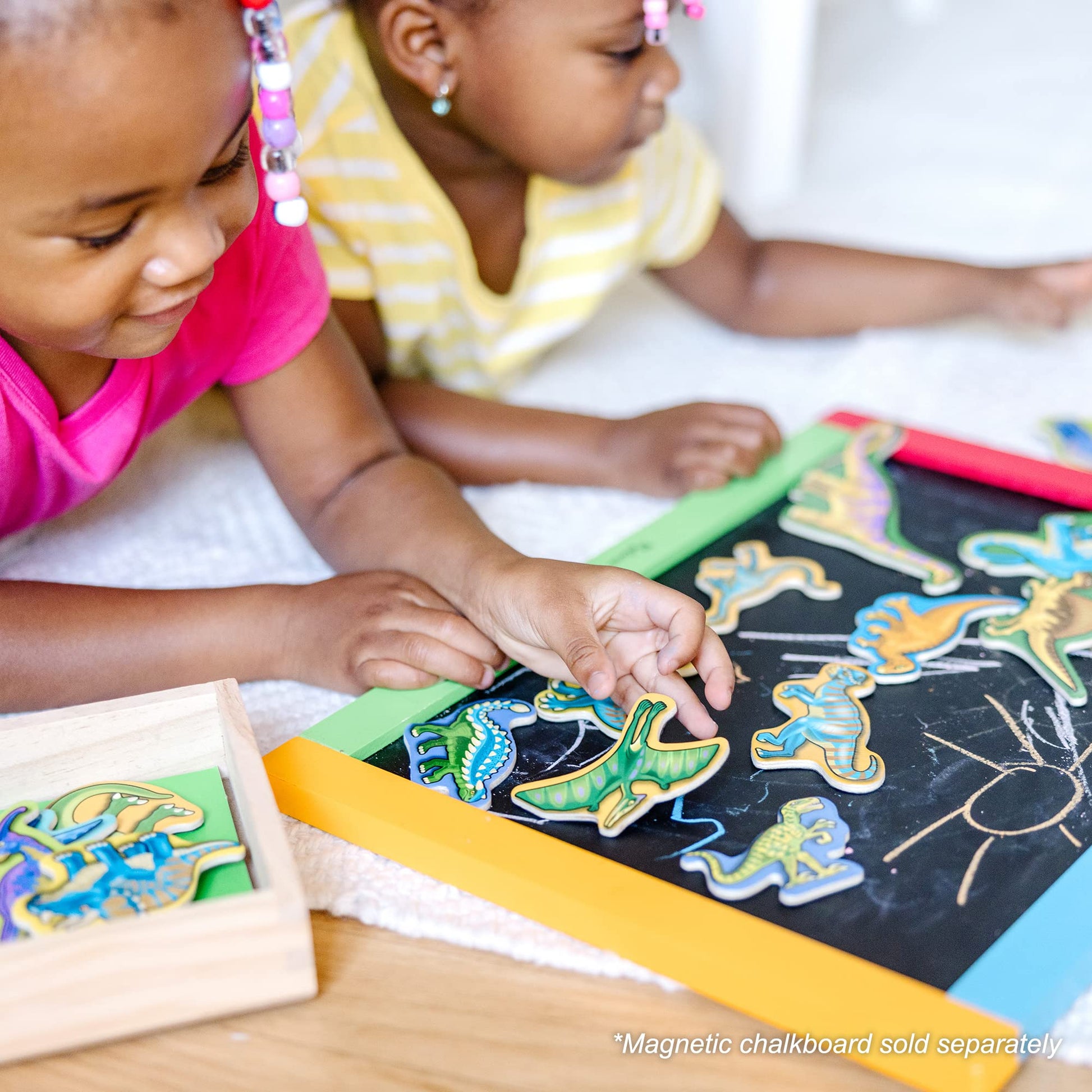 Product DescriptionTwenty magnetic dinosaurs eager to play in the twenty-first century! Bright colors add excitement to this dino collection contained in a convenient wooden case.From the ManufacturerFrom classic wooden toys to crafts, pretend play, and games, Melissa & Doug products provide a launch pad to ignite imagination and a sense of wonder in all children so they can discover themselves, their passions, and their purpose.Since the company’s founding more than 25 years ago, Melissa & Doug has consistently delivered innovative products that inspire open-ended thinking, encourage kids to see new possibilities, and offer Countless Ways to Play. It’s part of a bigger vision to Take Back Childhood. Because by giving children a true childhood with the space and freedom to explore their world, we give them a path to realizing their full potential!