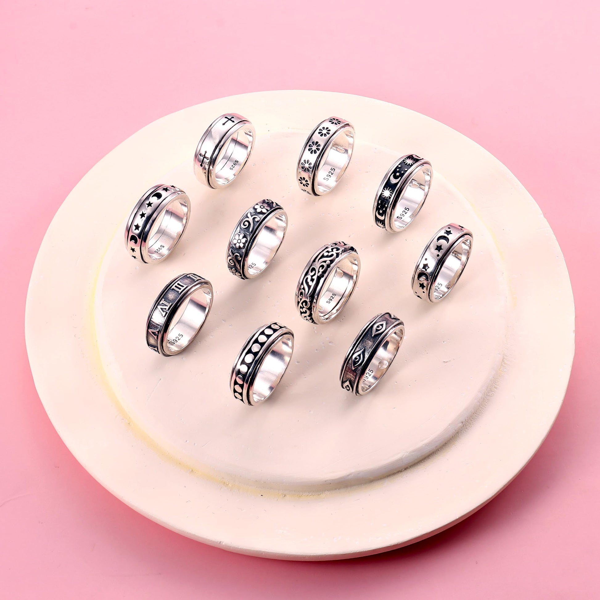 MILACOLATO 925 Sterling Silver Anxiety Ring for Women Men Platinum Plated Sterling Silver Band Fidget Ring Moon Star Spinner Ring Stress Anxiety Relief Item, Size 10