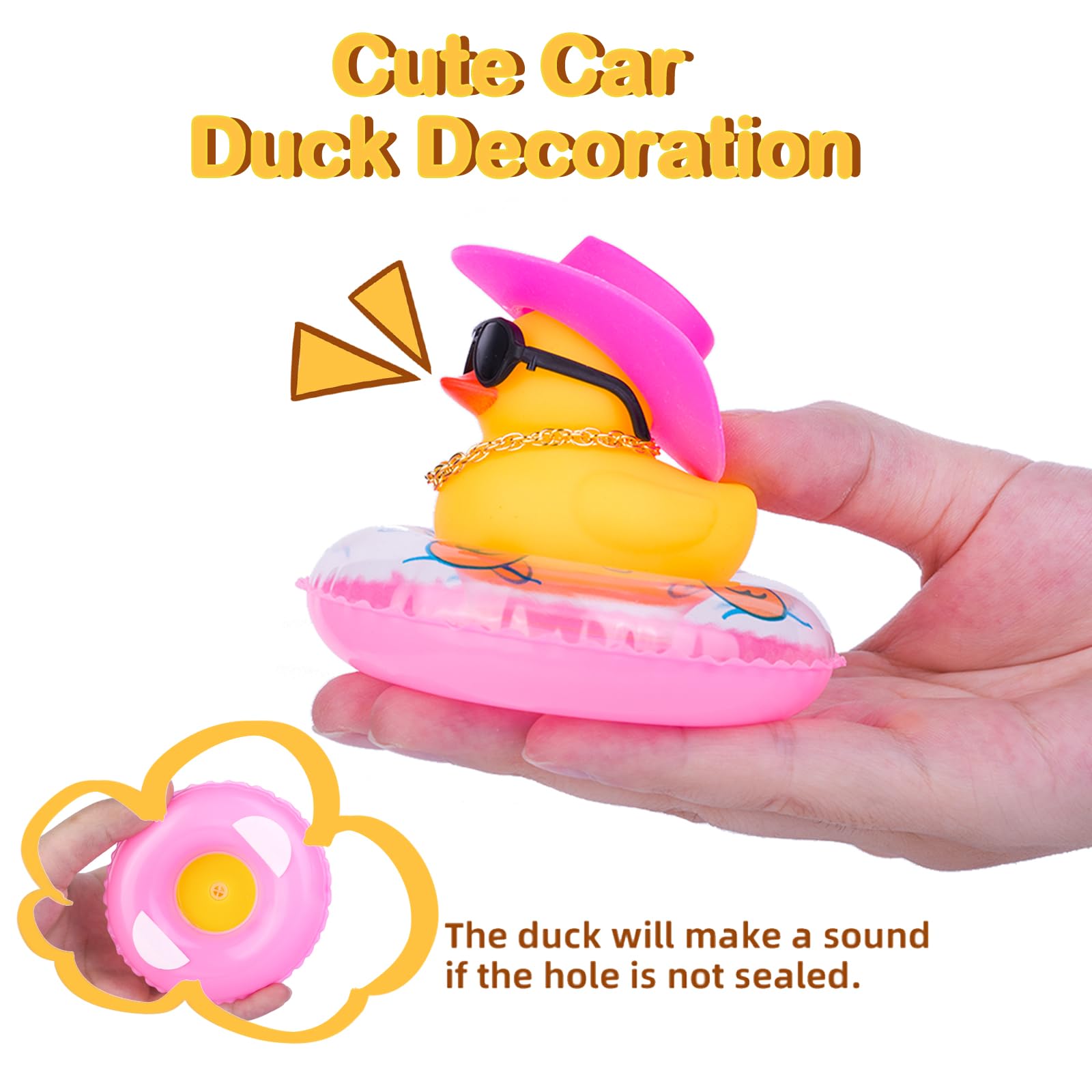 MuMyer 2Pcs Duck Car Ornaments - Yellow Duck Car Dashboard Decorations with Mini Swim Ring Cowboy Hat Necklace and Sunglasses