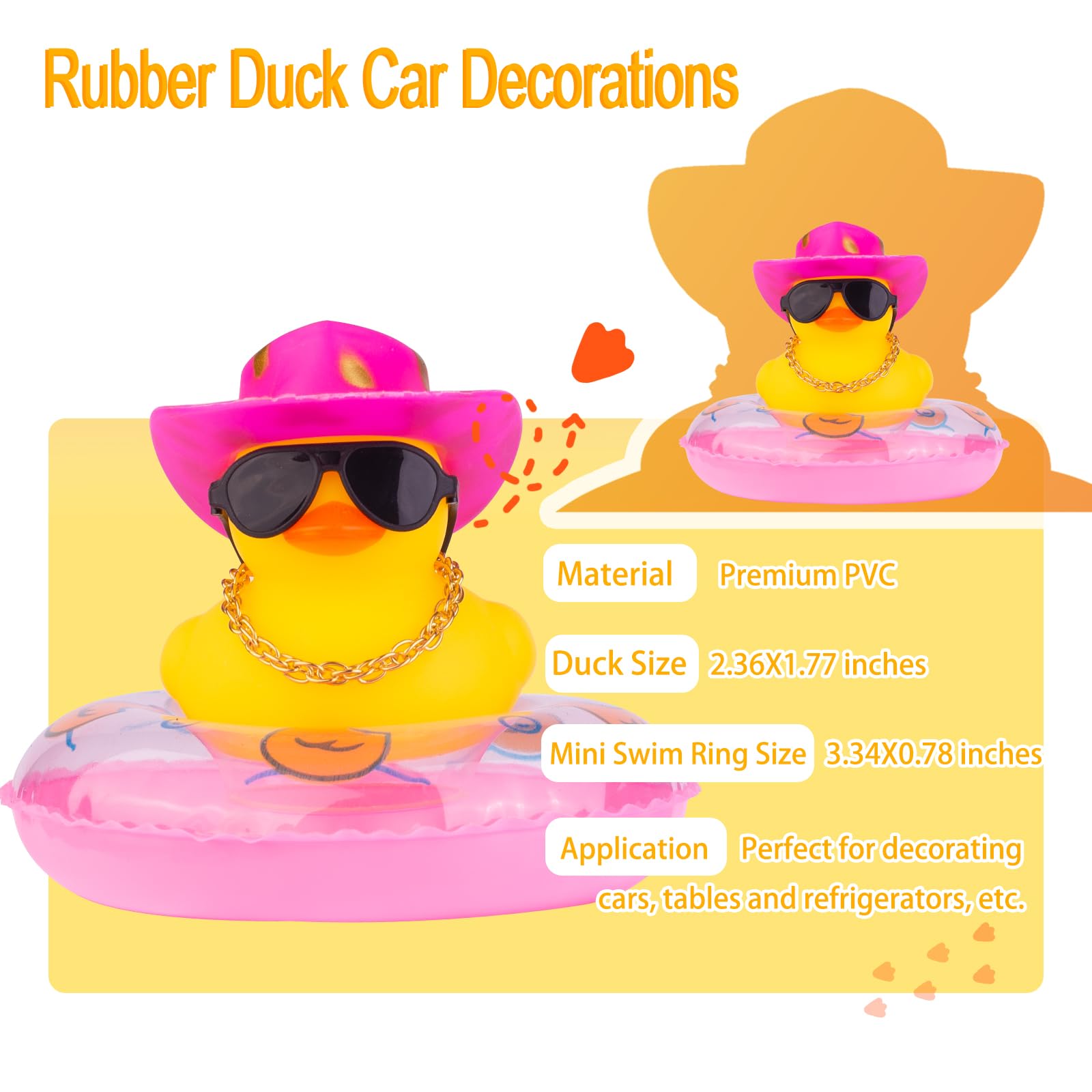 MuMyer 2Pcs Duck Car Dashboard Decoration with Mini Swim Ring Cowboy Hat Necklace and Sunglasses