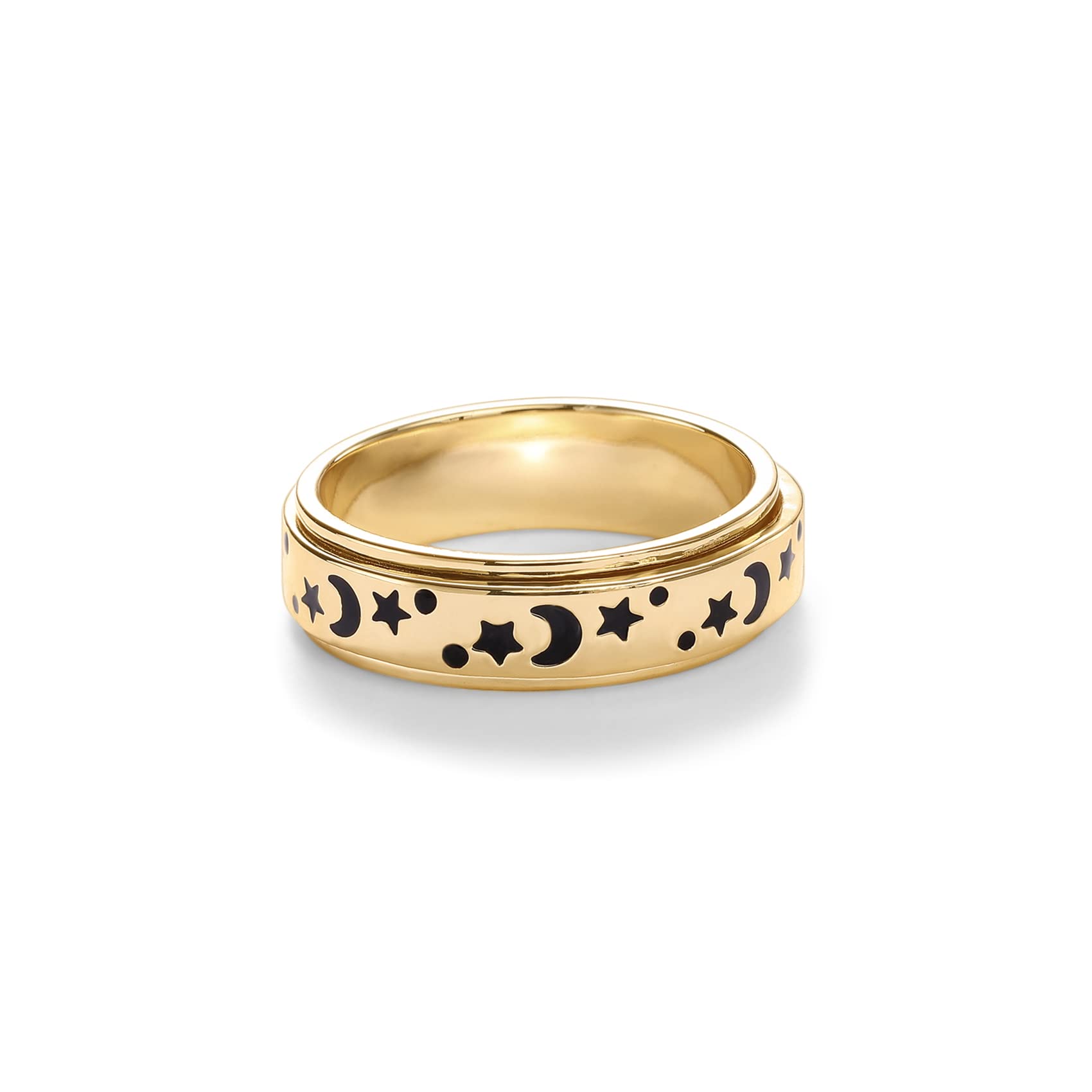 Pavoi Spinning Anxiety Ring (Moon And Star, Yellow Gold, 6)