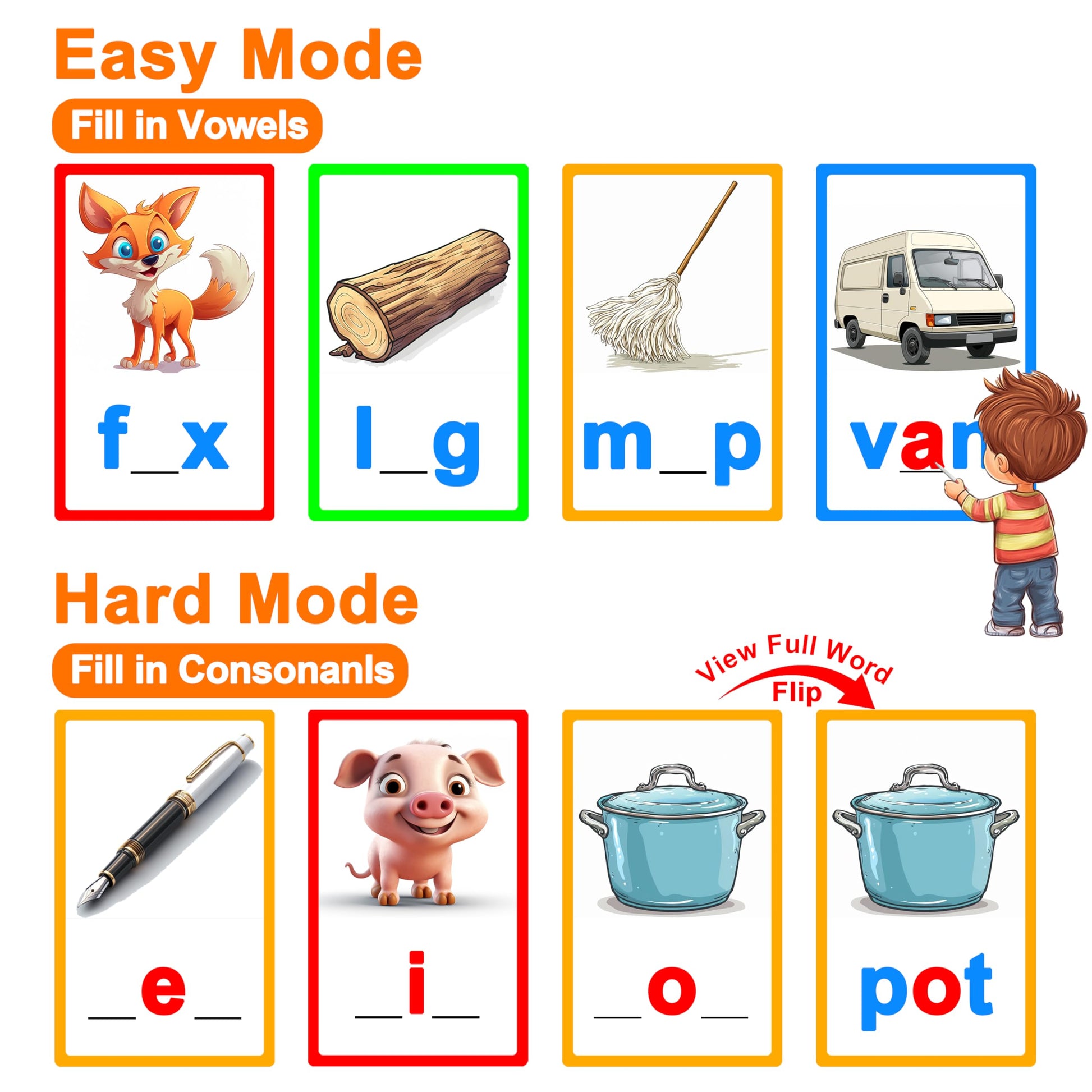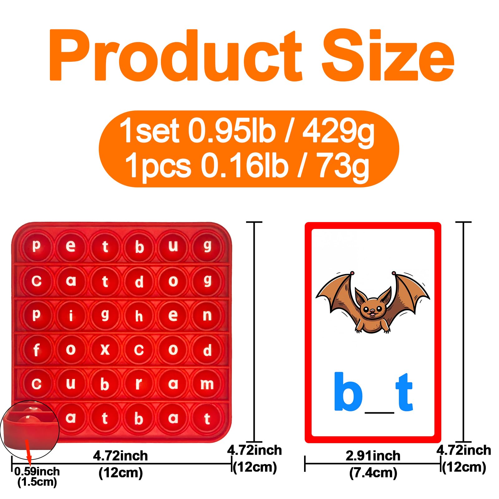 Proweber CVC Learning Pop Fidget Set with Flash Cards - Educational Spelling and Reading Game for Preschool and Kindergarten, In