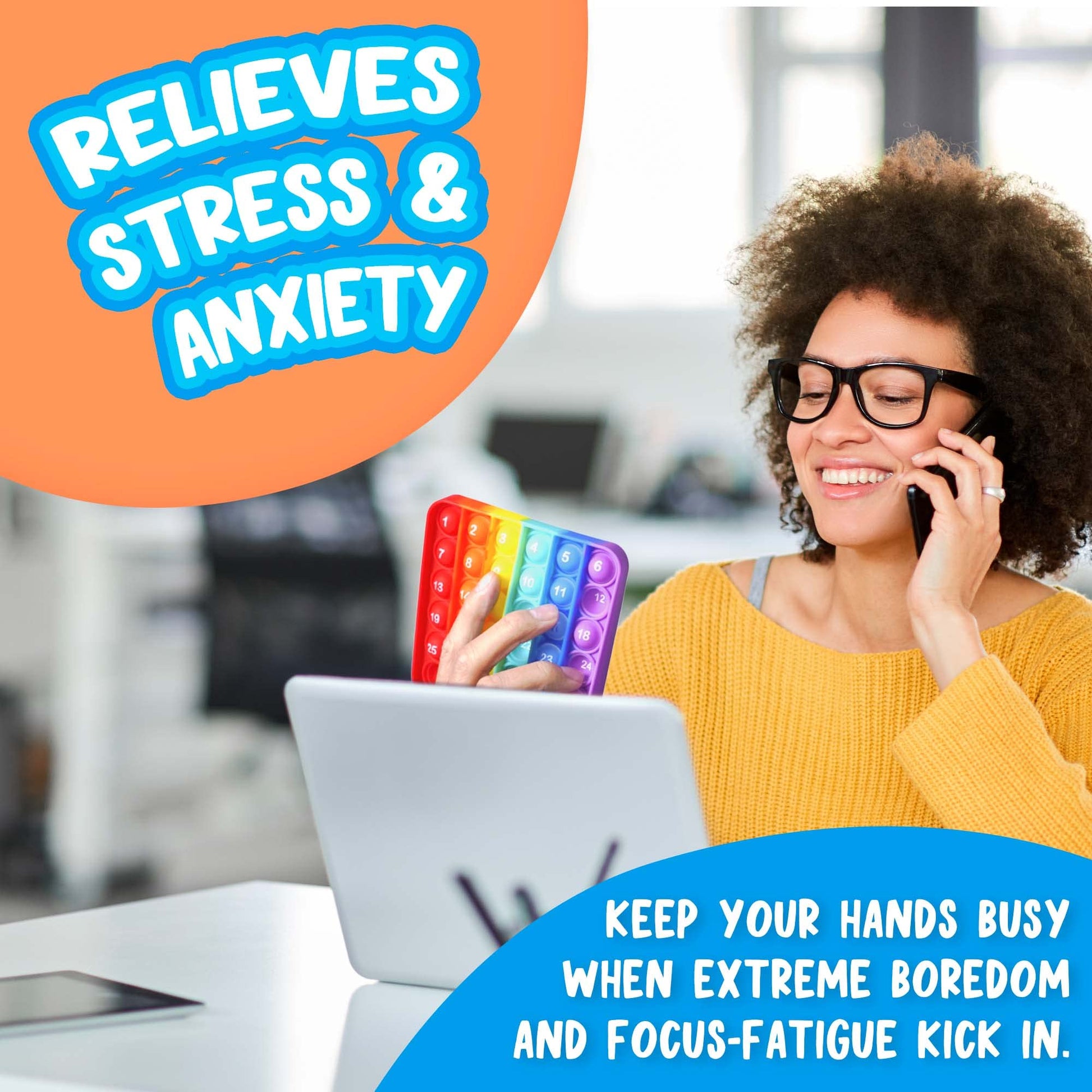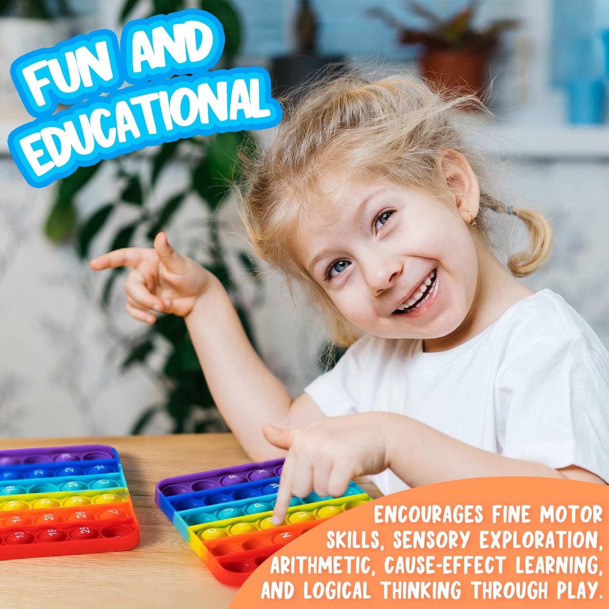View comparePush Pop Bubble Fidget Sensory Toy, 4-Pack, Square, 5 X 5 Inches, Rainbow, Numbers And Alphabets, Party Favors
