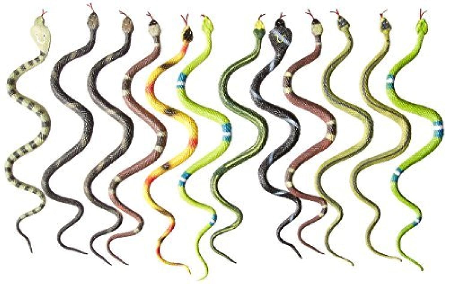 Contents - 14' Rain Forest Snakes, Assorted Designs, Set of 12. | Fun - A 14-inch rainforest snake toy brings endless fun! Use it for pranks, jungle-themed adventures, or as a cool desk pet. Twist, coil, and hide it for surprise scares or imaginative play. Perfect for kids, collectors, and playful tricksters alike! | Occasions - A 14-inch rainforest snake toy is perfect for parties, Halloween, pranks, jungle-themed events, and educational activities. Use it for decorations, playtime adventures, or as a fun gag gift. Great for April Fools’, school projects, and reptile-themed birthday celebrations! | Gift Idea - A 14-inch rainforest snake toy makes a fun and unique gift! Perfect for prank lovers, reptile enthusiasts, and kids who enjoy imaginative play. Great for birthdays, stocking stuffers, party favors, or gag gifts—sure to surprise and entertain any recipient! | Ages 3+ - This product is recommended for ages 3 and up.