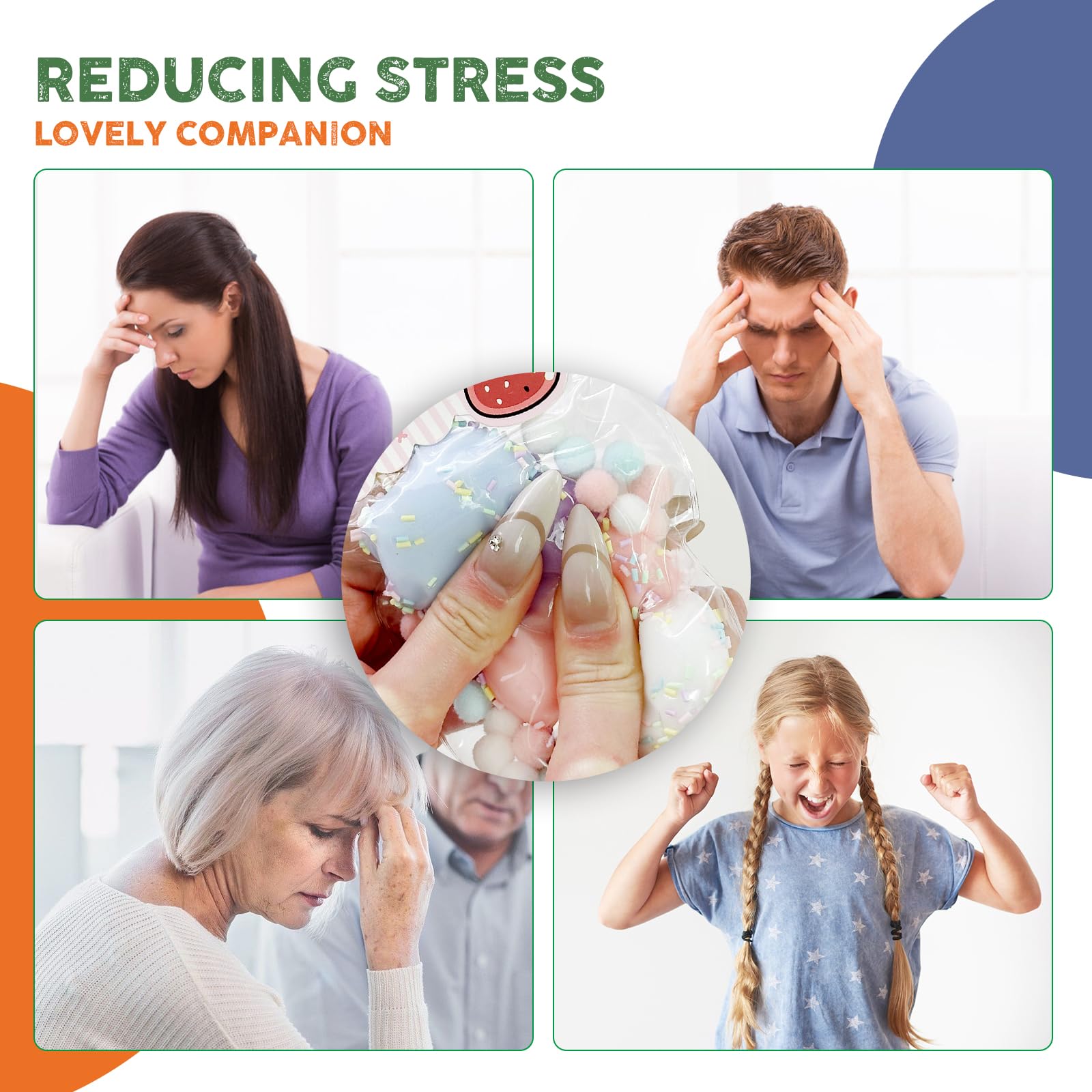 The squishy is cute and soft jelly that fits perfectly in the palm of the hands. It is placed in a transparent bag and the small balls and other small accessories inside are placed manually so the color size and style are random. These stress balls for mature-themed can be easily tucked into pockets backpacks bags etc. as travel toys!