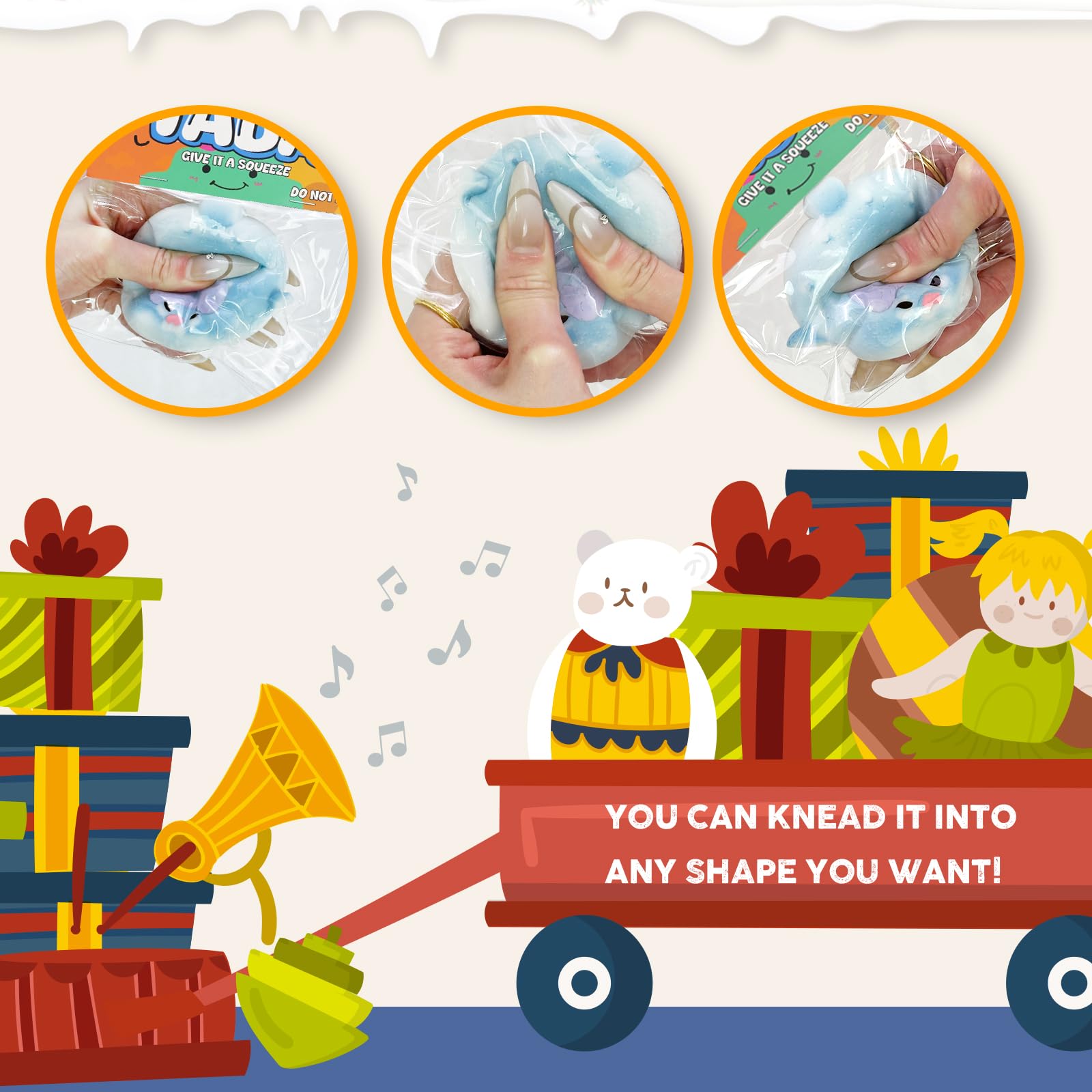 The squishy is cute and soft jelly that fits perfectly in the palm of the hands. It is placed in a transparent bag and the small balls and other small accessories inside are placed manually so the color size and style are random. These stress balls for mature-themed can be easily tucked into pockets backpacks bags etc. as travel toys!