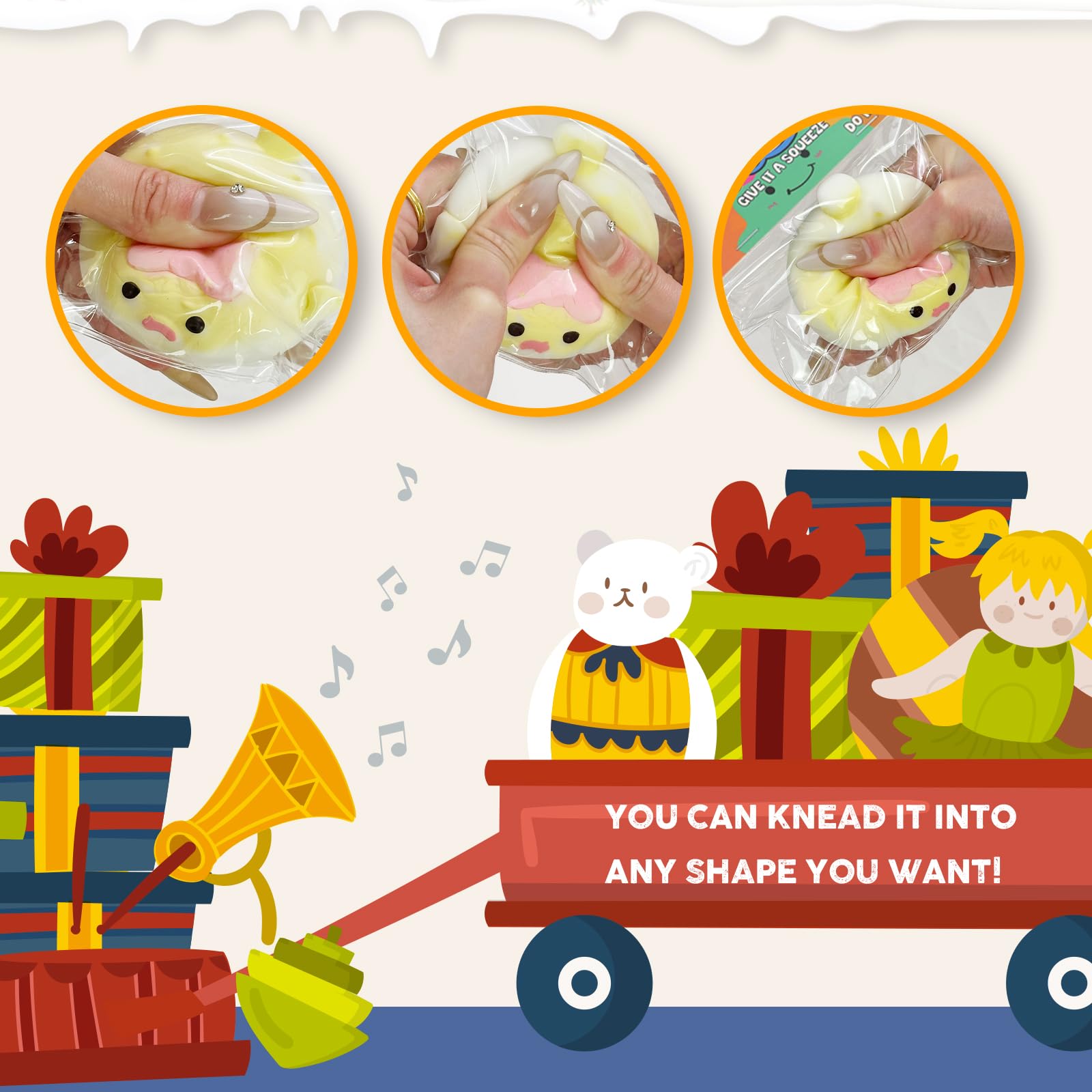 The squishy is cute and soft jelly that fits perfectly in the palm of the hands. It is placed in a transparent bag and the small balls and other small accessories inside are placed manually so the color size and style are random. These stress balls for mature-themed can be easily tucked into pockets backpacks bags etc. as travel toys!