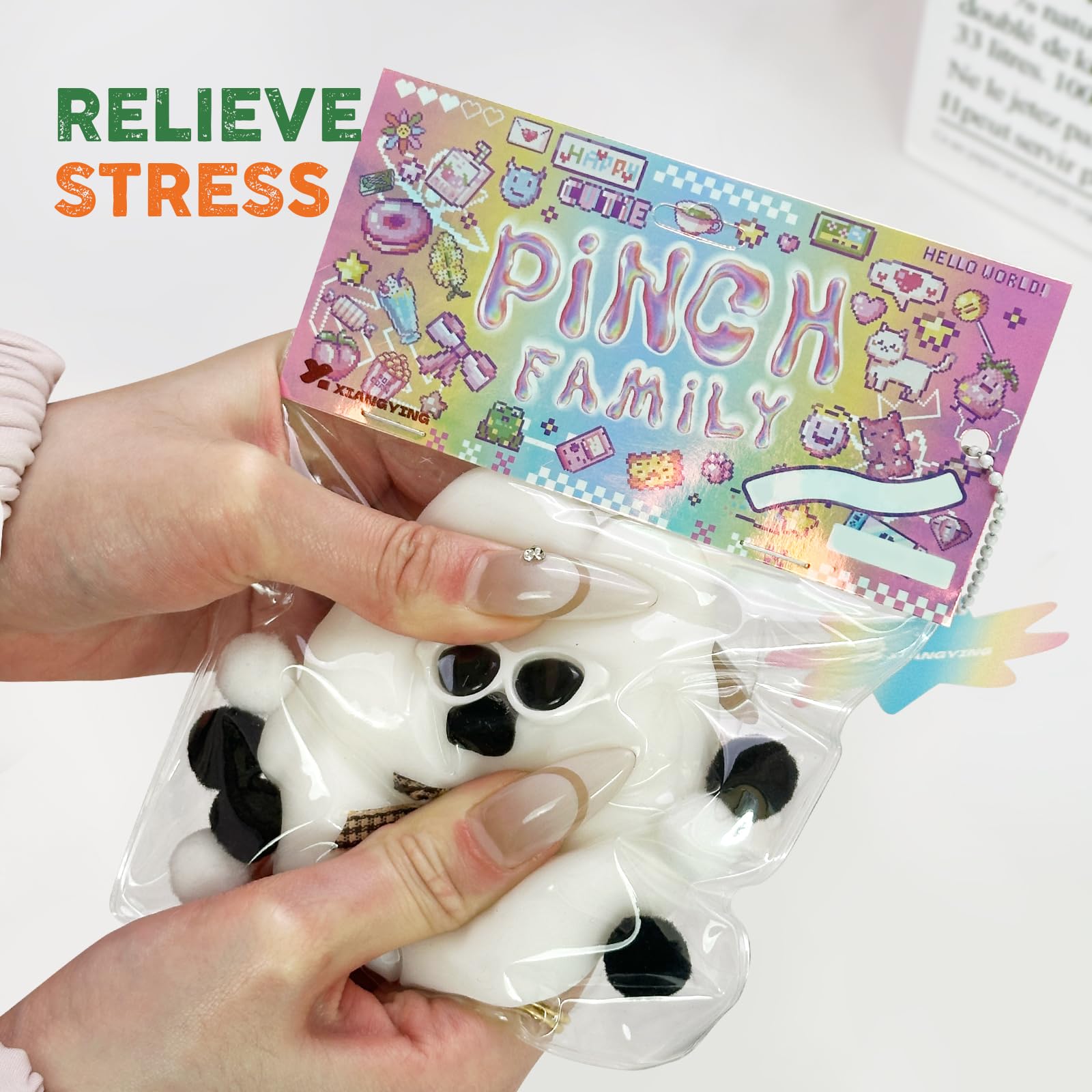 The squishy is cute and soft jelly that fits perfectly in the palm of the hands. It is placed in a transparent bag and the small balls and other small accessories inside are placed manually so the color size and style are random. These stress balls for mature-themed can be easily tucked into pockets backpacks bags etc. as travel toys!