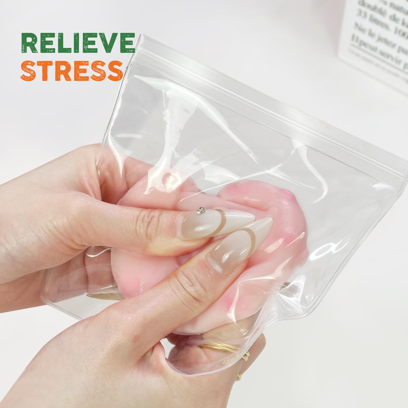 The squishy is cute and soft jelly that fits perfectly in the palm of the hands. It is placed in a transparent bag and the small balls and other small accessories inside are placed manually so the color size and style are random. These stress balls for mature-themed can be easily tucked into pockets backpacks bags etc. as travel toys!