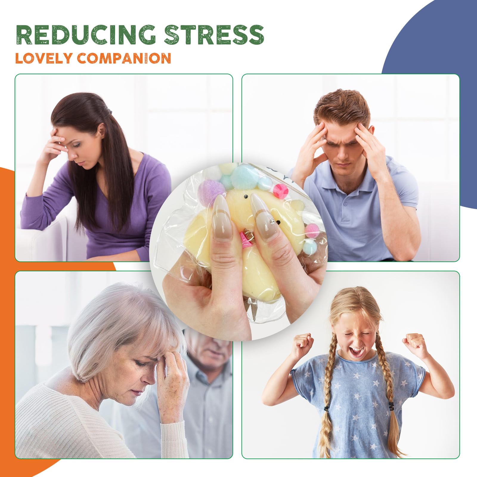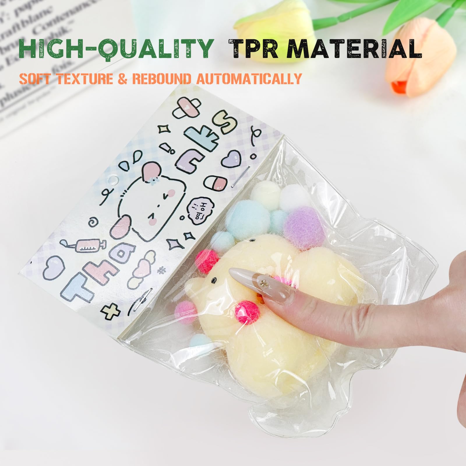 The squishy is cute and soft jelly that fits perfectly in the palm of the hands. It is placed in a transparent bag and the small balls and other small accessories inside are placed manually so the color size and style are random. These stress balls for mature-themed can be easily tucked into pockets backpacks bags etc. as travel toys!