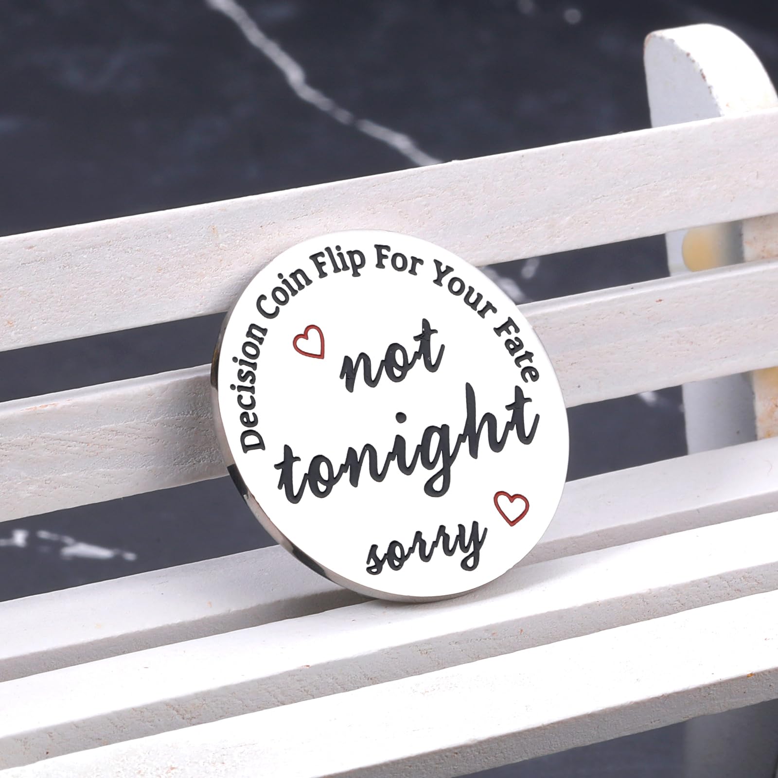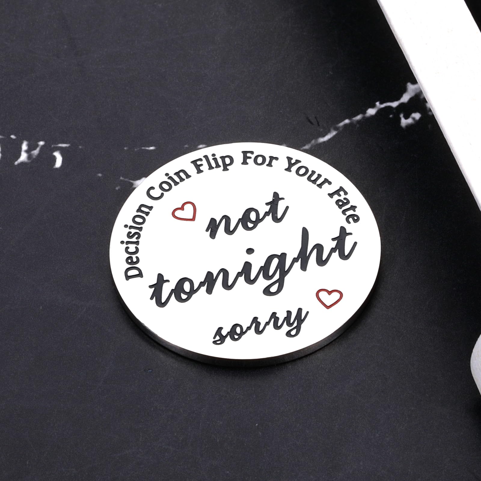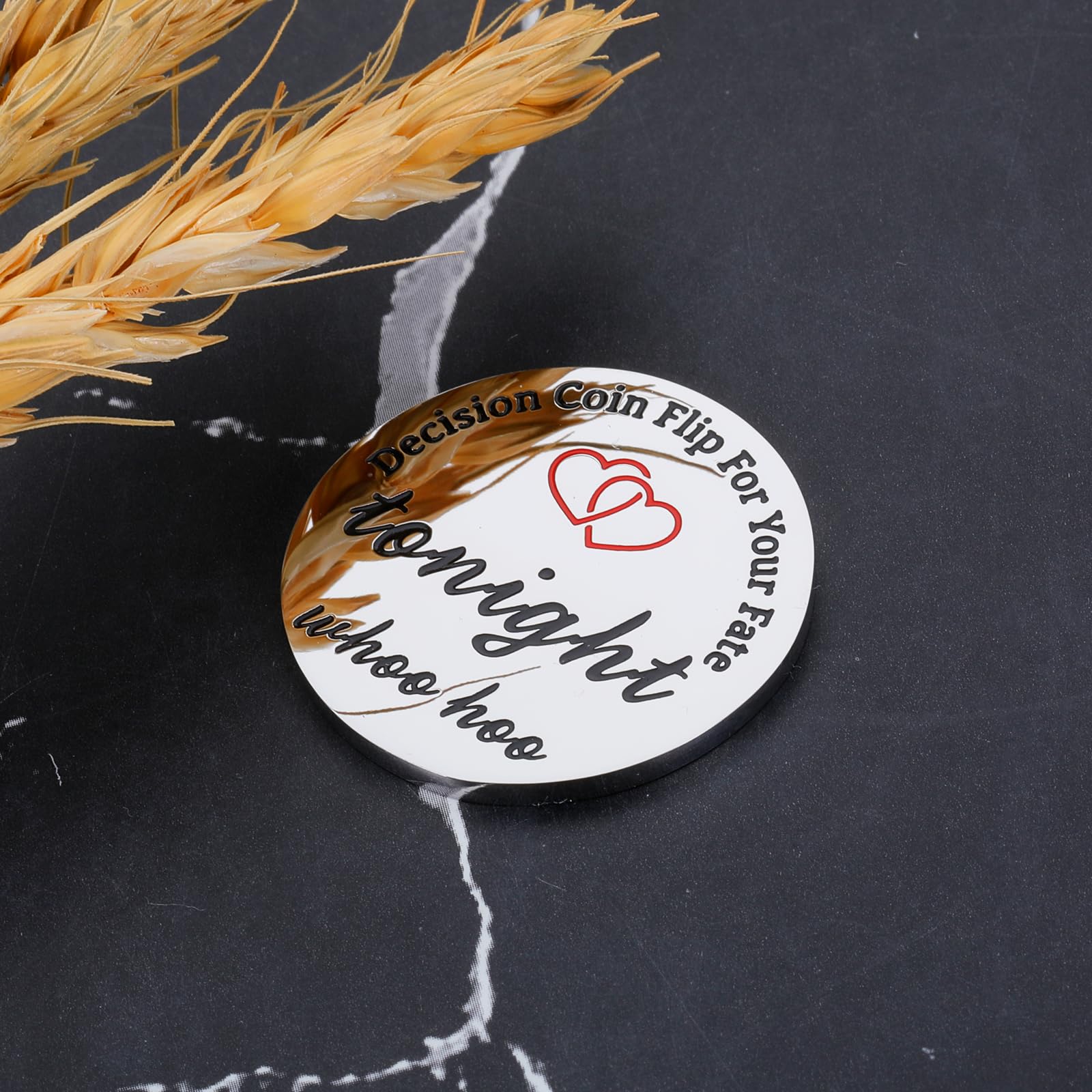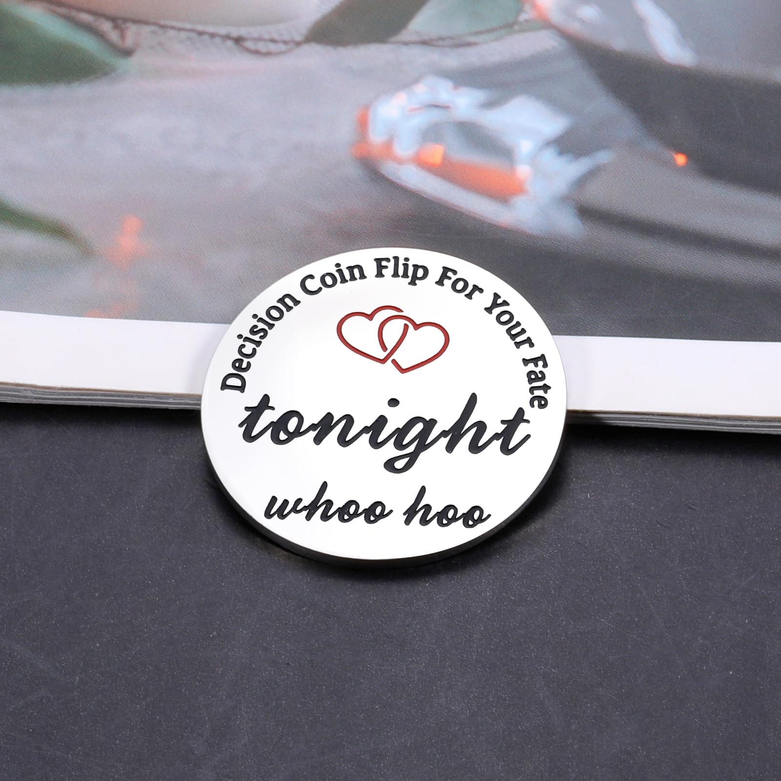 - Q: What makes this Valentine's Day gift unique? A: This Valentine's Day gift features a humorous and interactive design with a coin that says 'Tonight Whoo Hoo' on one side and 'Not Tonight Sorry' on the other. It's a fun way to decide on a romantic night with your partner, making it a memorable gift.