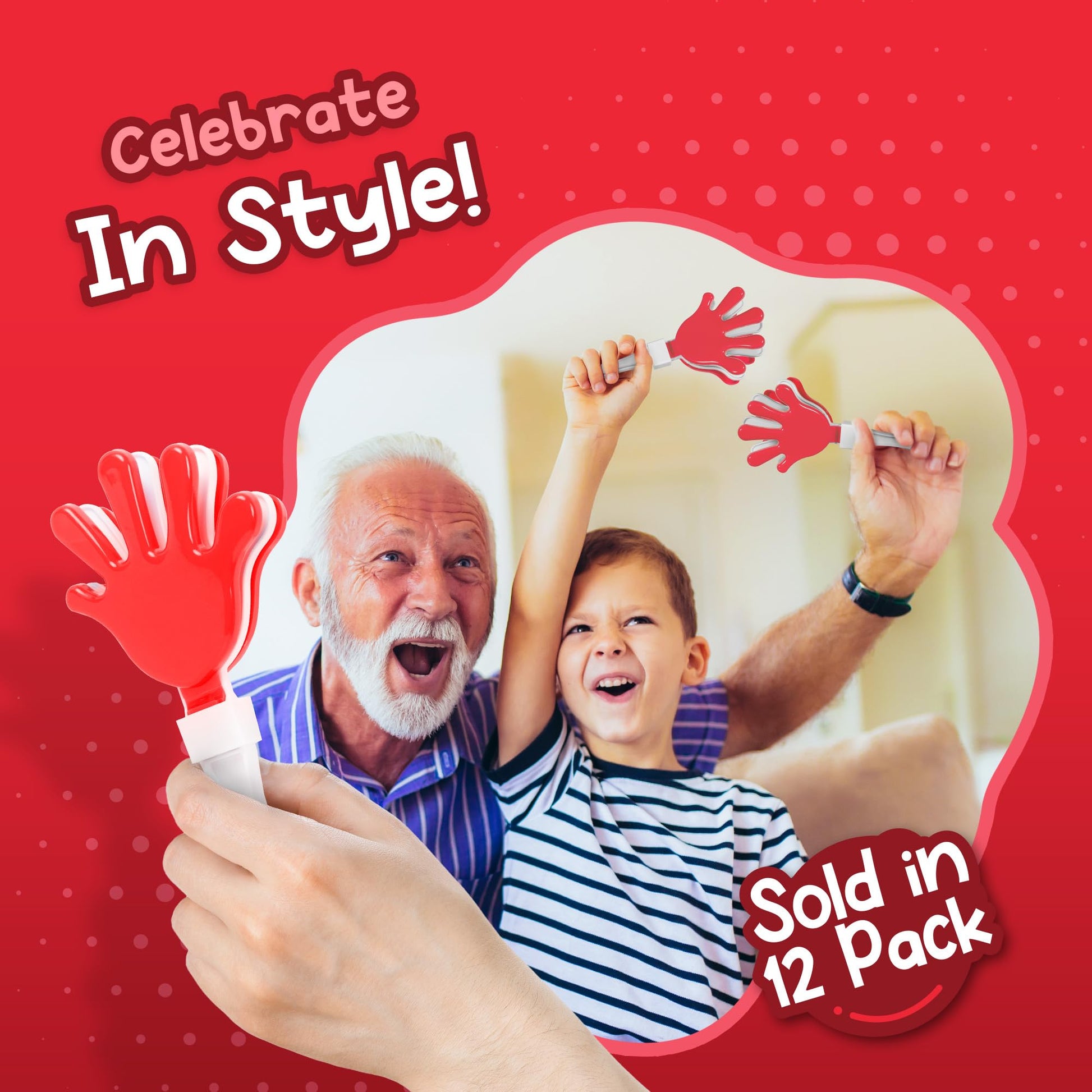 Windy City Novelties 12-Pack Red & White 7'' Inch Mini Hand Clappers Noisemakers In Bulk