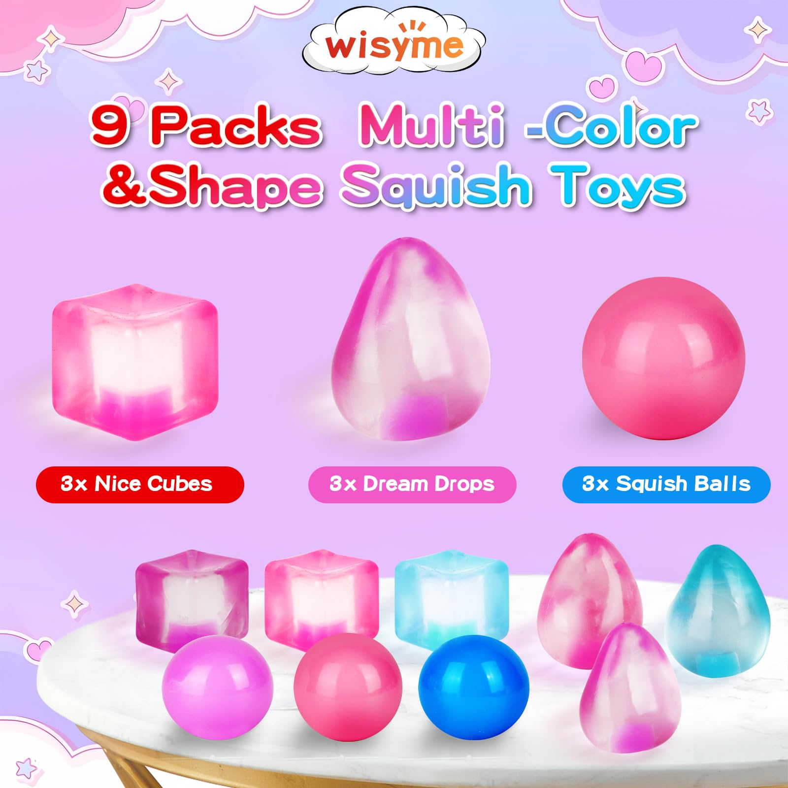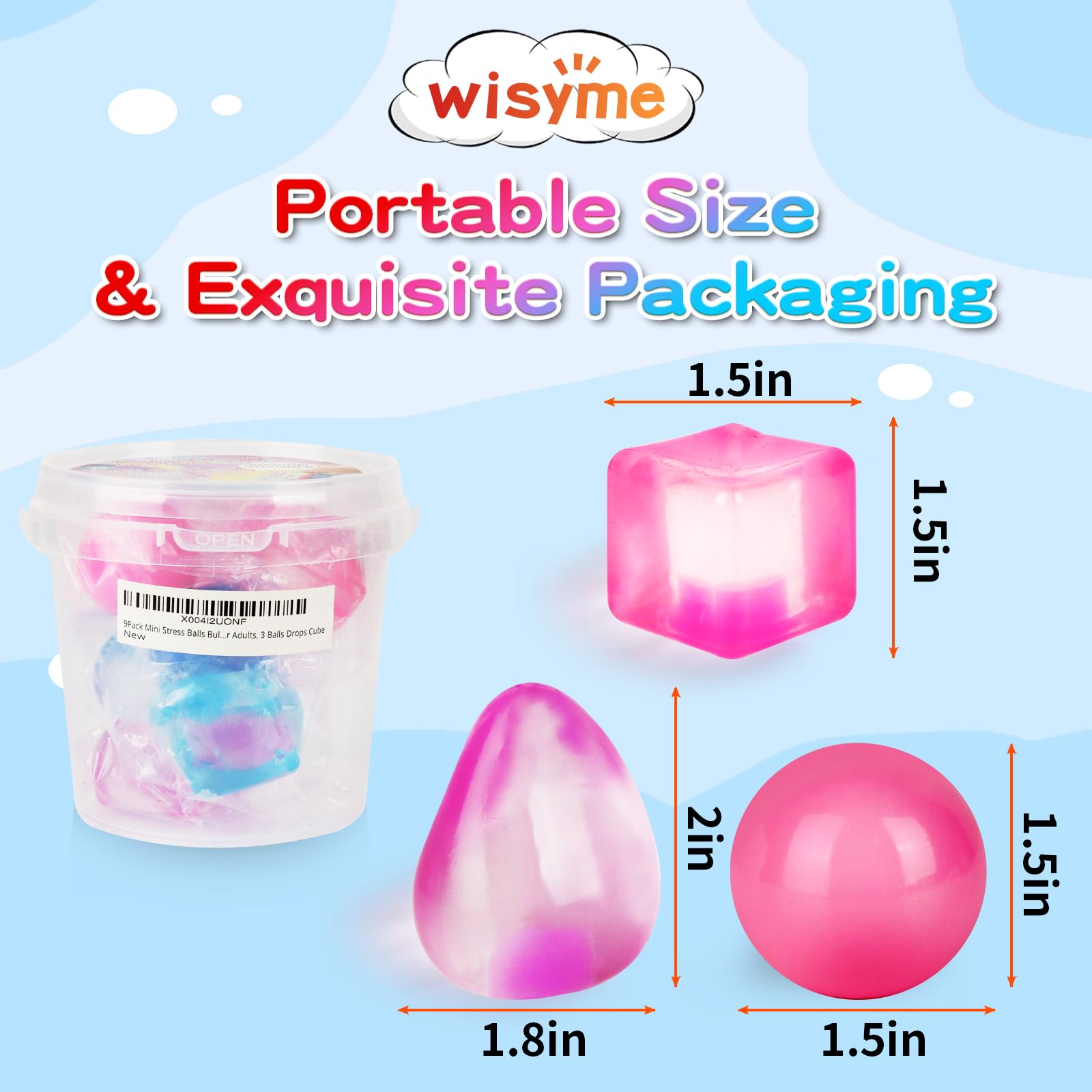Wiysme Mini Sensory Fidget Toy Variety Pack - 9Pcs Squishable Squeeze Toy Set, 3Pack Mini Cube, Balls, Drops, Always Returns To