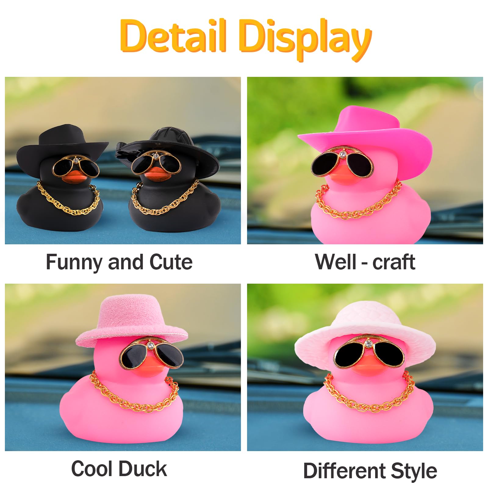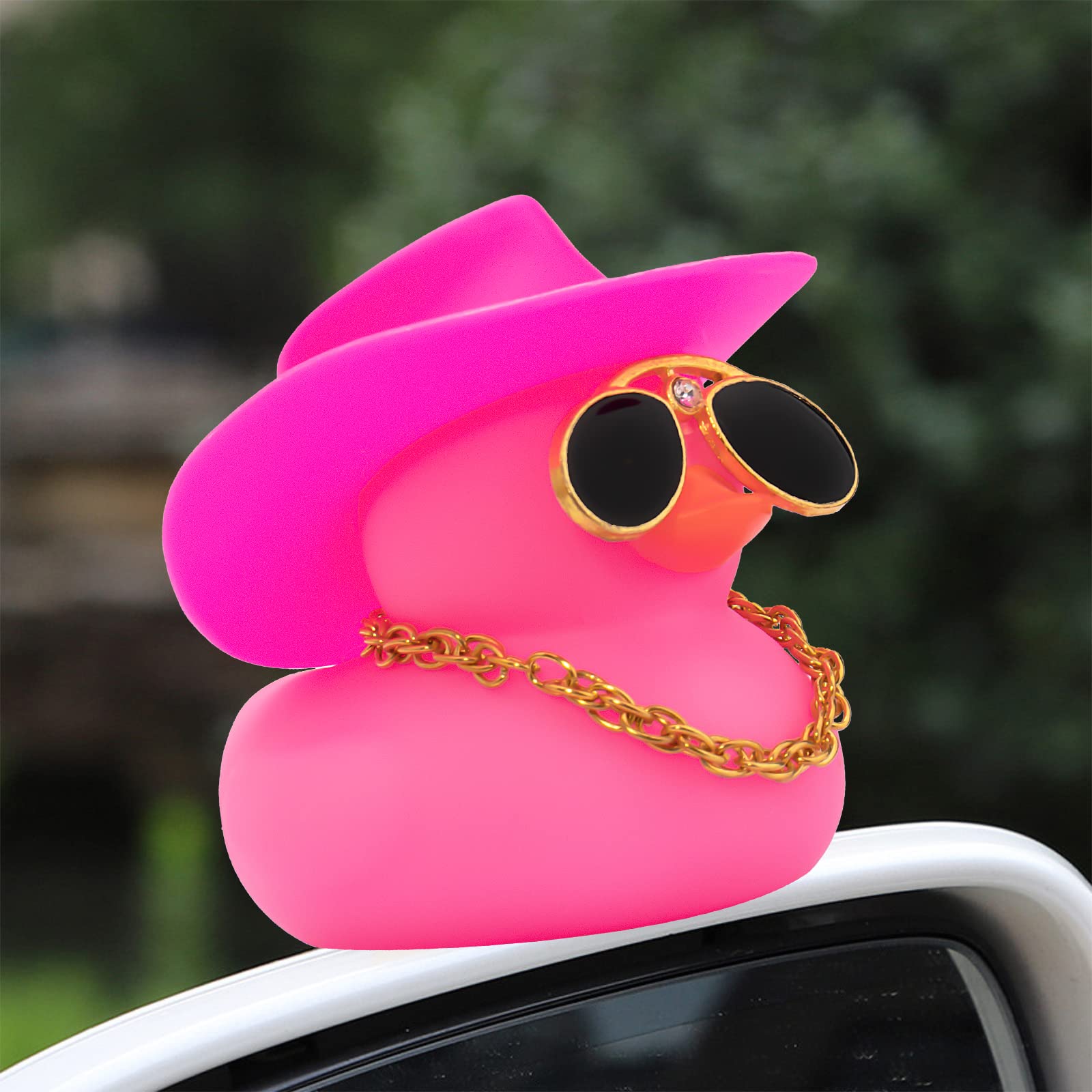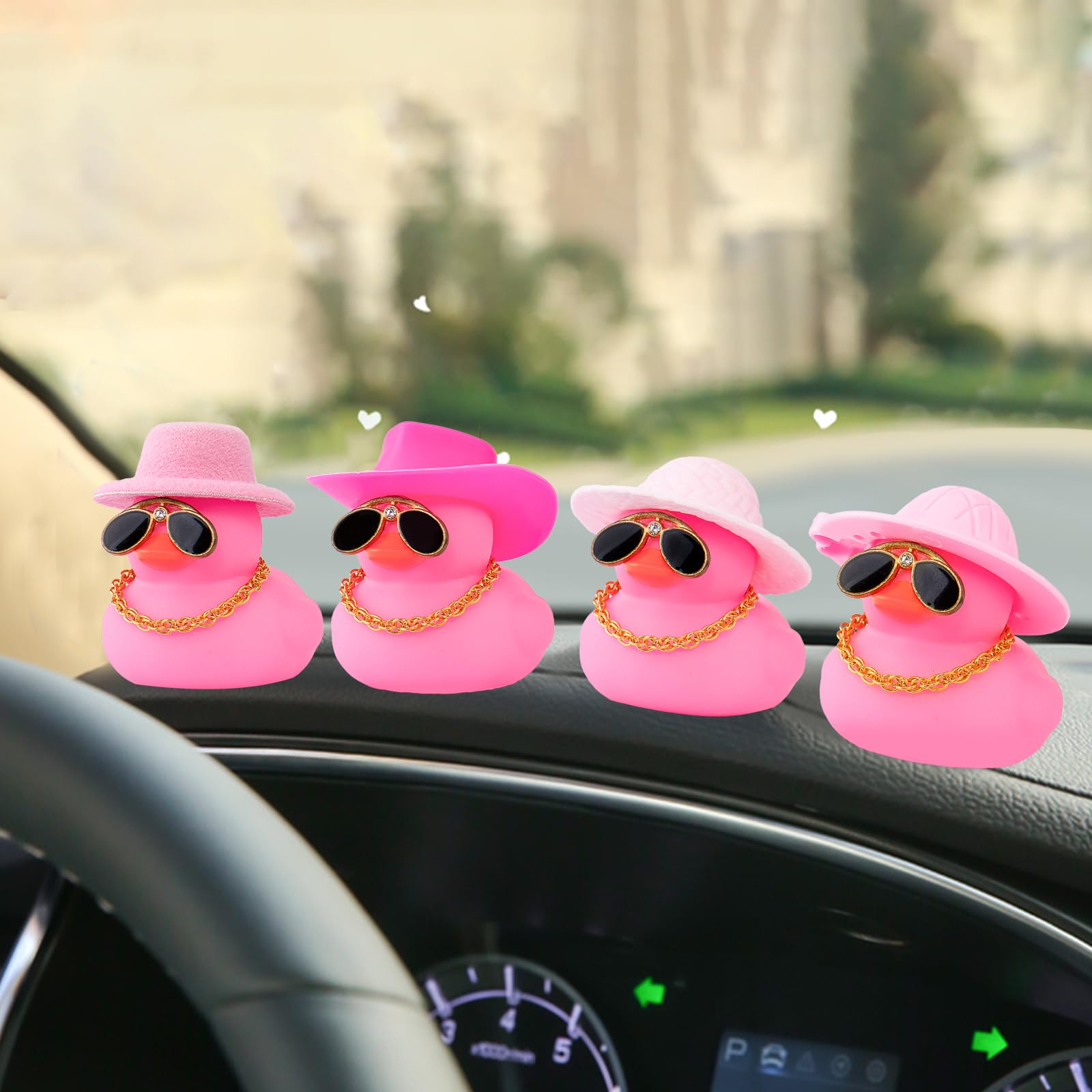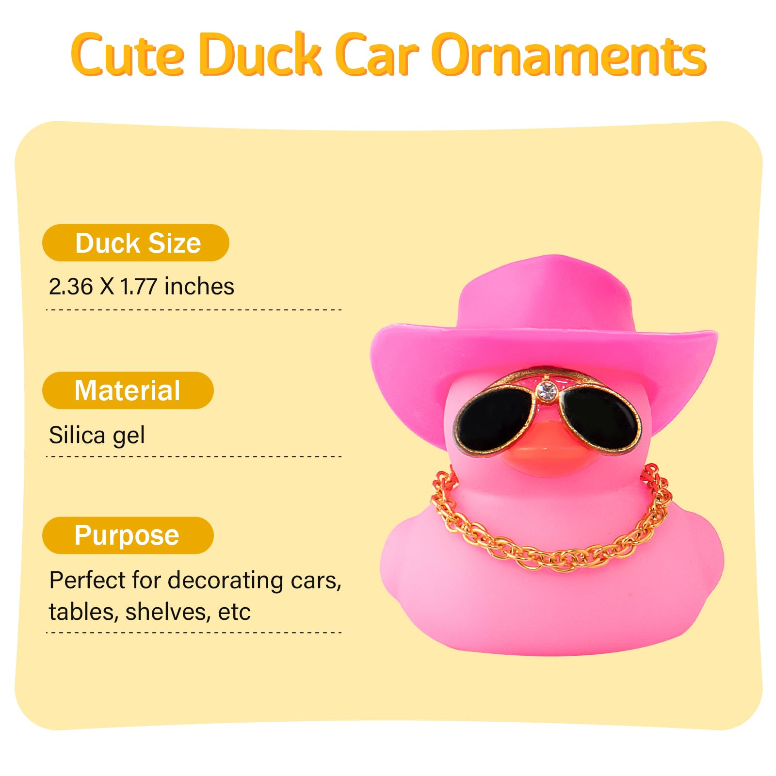 Wonuu Car Dashboard Rubber Duck Ornament, Car Decoration Colour Ducks Accessories With Mini Hat Necklace And Sunglasses, M-Pink-