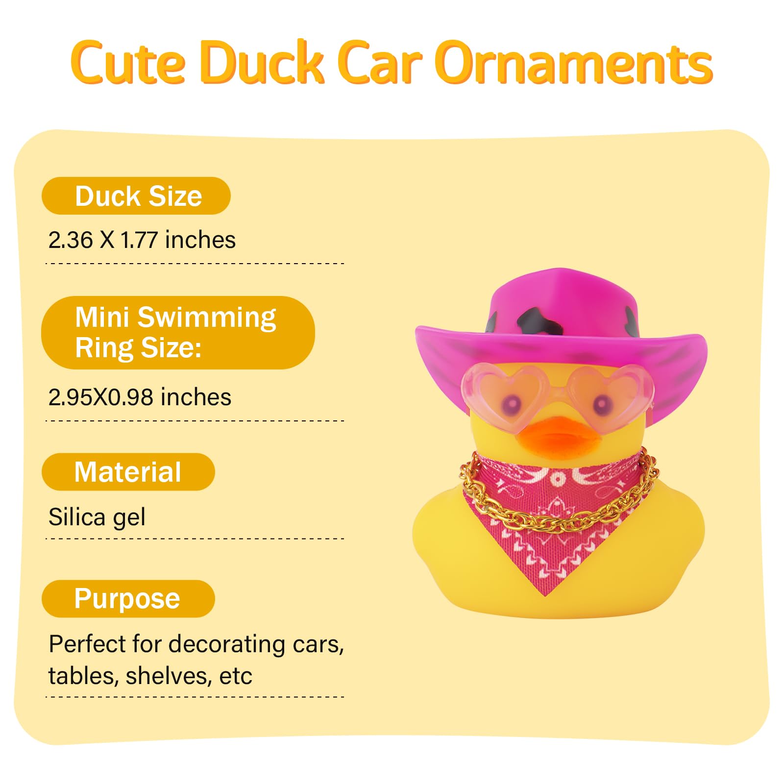 Wonuu Car Rubber Cowboy Duck, Yellow Ducks Decoration Dashboard With Cowboy Hat Necklace Sunglasses, Black Spots Pink