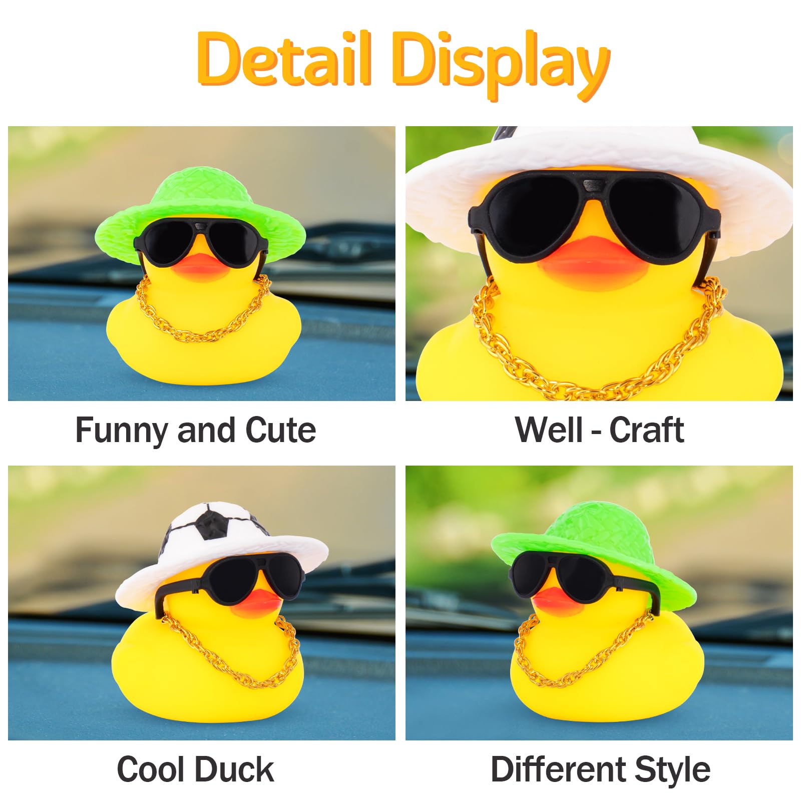 Wonuu Rubber Duck Car Ornaments - Duck Car Dashboard Decorations With Soccer Court Hat Necklace And Sunglasses