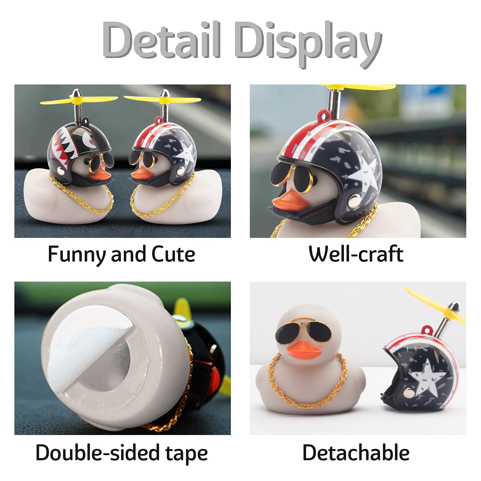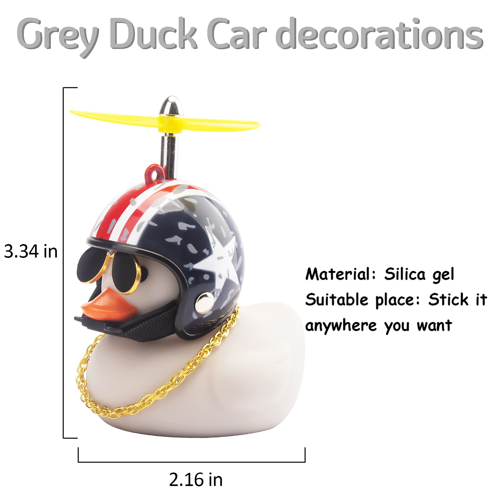 View compareWonuu Rubber Duck Toy Car Decoration Ornaments - Grey Duck Car Dashboard Decorations with Cool Glasses and Propeller Helmet