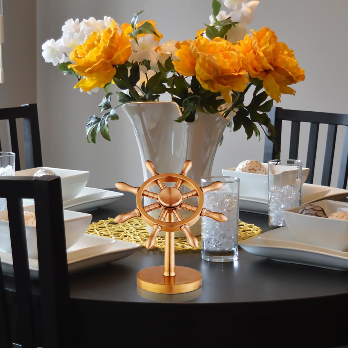 well-made METAL SPINNER 1.Deluxe and well-made 2.Solidly built and hefty 3.Works very well Spins for a long time extremely Quiet very smooth Ideal gift choice: Great for those who love sailing and nautical art this nautical ship wheel will leave your guests in awe. Great gift for family and friends on special days such as Easter new year birthday party etc. Brass Boat wheel carrying our yearning for the sea. No matter how difficult and challenging life is we must steer our ship as firmly as a captain and move forward. Material: Brass Size Chart: 3.58 * 3.74 in Package Wheel: 1 x ship wheel Spin ornaments