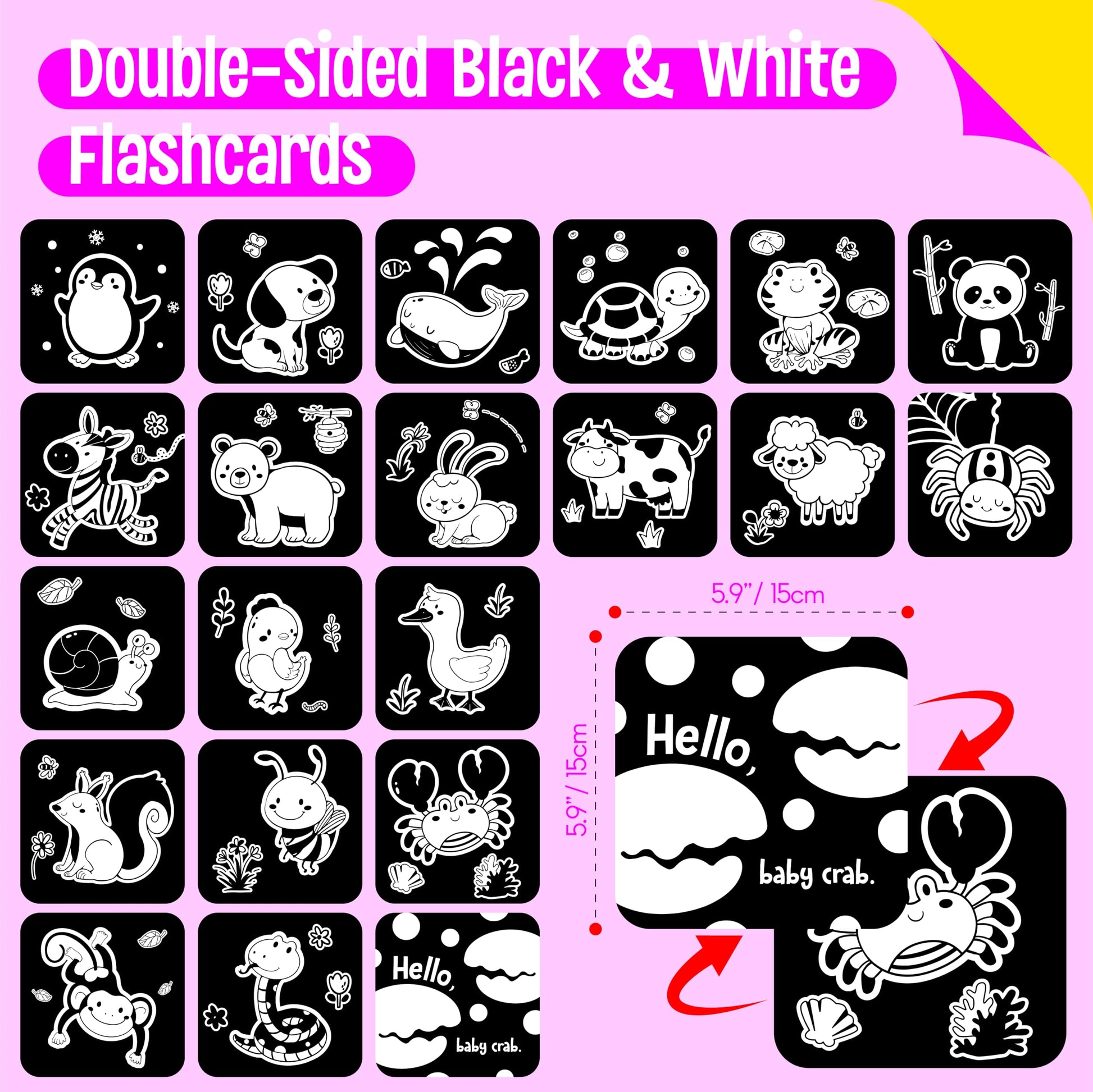 SpriteGru is an experienced early educational tools supplies producer and aiming to provide the best quality and user experience.High Contrast Pattern Cards: It comes with 20 high-contrast black-and-white visual cards specially designed for newborns and infants. The bold, eye-catching patterns captivate your baby's attention, helping to strengthen visual focus and stimulate early brain development from day one. Each card measures 5.9 X 5.9 , proper size for baby to grasp.Double-side Design: Each card features double-sided printing. On one side, adorable animal illustrations engage your babys curiosity, while the other side highlights key traits of the animal alongside a friendly greeting. High-contrast patterns help stimulate visual development in newborns and young infants by capturing their gaze and strengthening focus skills.Premium Quality: Made from thickened cardboard, durable enough for teething babies Coated with premium anti-dazzle film, easy to recognize and protect babies eyes as well. Printed with non-toxic vegetable oil-based high gloss ink, BPA-free and safe to use. The rounded corners and smooth edges are safe enough for babies small hands to grab it.Ideal Gift: The brain development is vital for babies growth, these black and white high contrast baby visual stimulus cards play an important role in cognitive development. It is perfect as birthday, holidays gift for newborn and infants.Enhance Visual & Brain Development: These visual stimulus cards are expertly designed to support your babys early cognitive and sensory development. By introducing patterns, animals, and simple greetings, they improve focus, visual tracking, and memory skills-providing a strong foundation for lifelong learning.