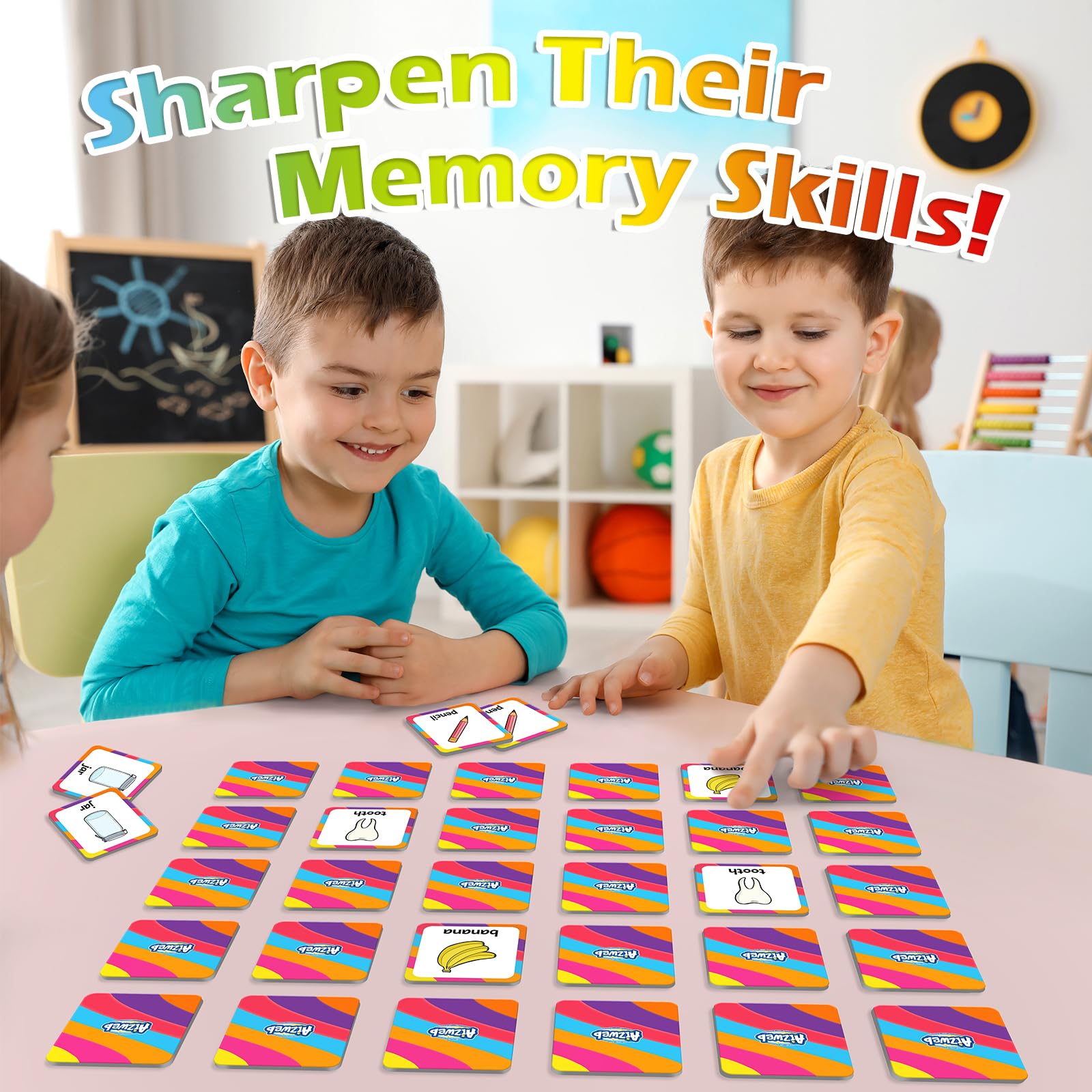 Aizweb First Words Match Game,Memory Game,52 Pcs Toddler Baby Flash Cards,Educational Toys For Pre K Preschool Kindergarten Learning Activities,Speech Therapy Materials Classroom Must Haves