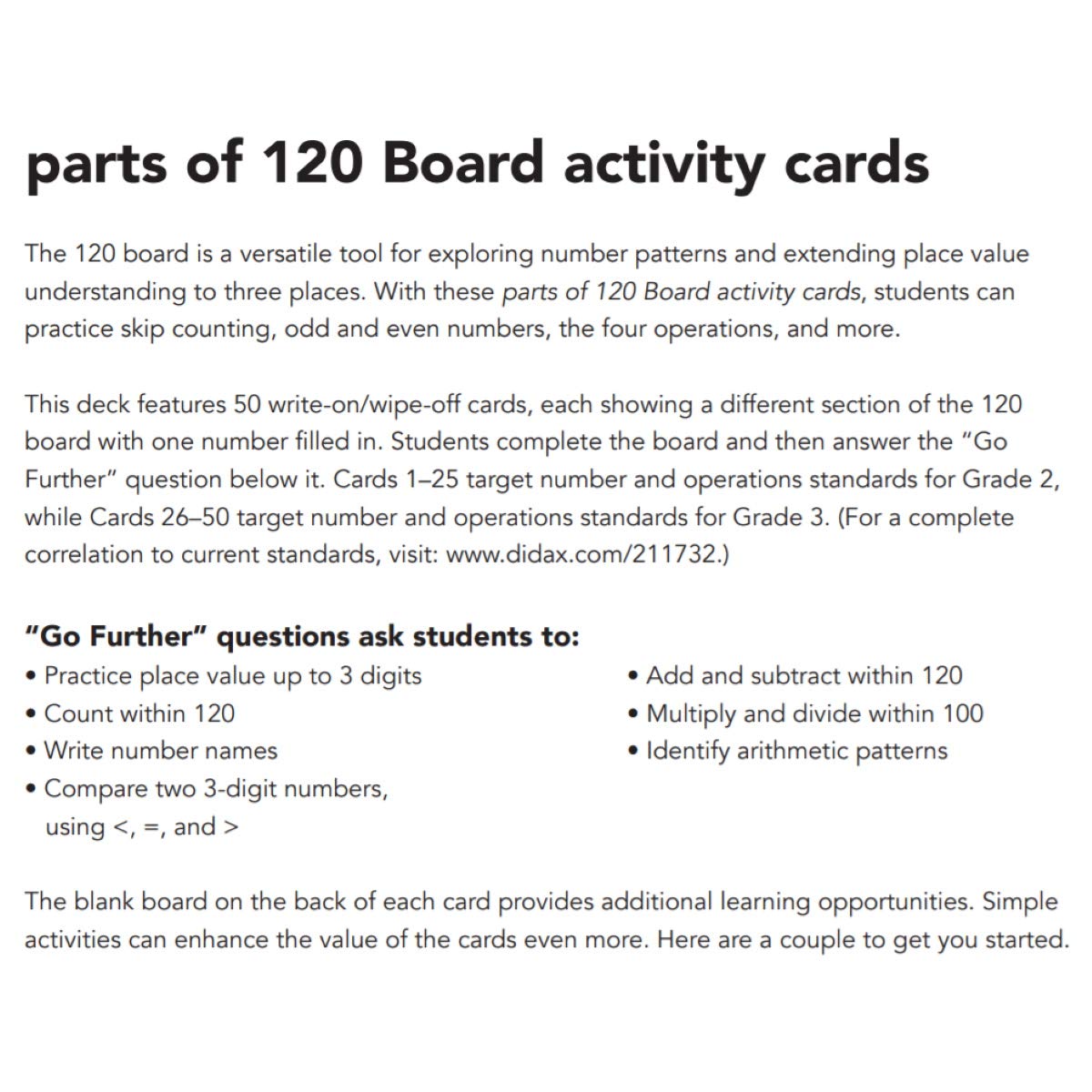 Didax Parts Of 120 Board Activity Cards, Grades 2 To 3, White