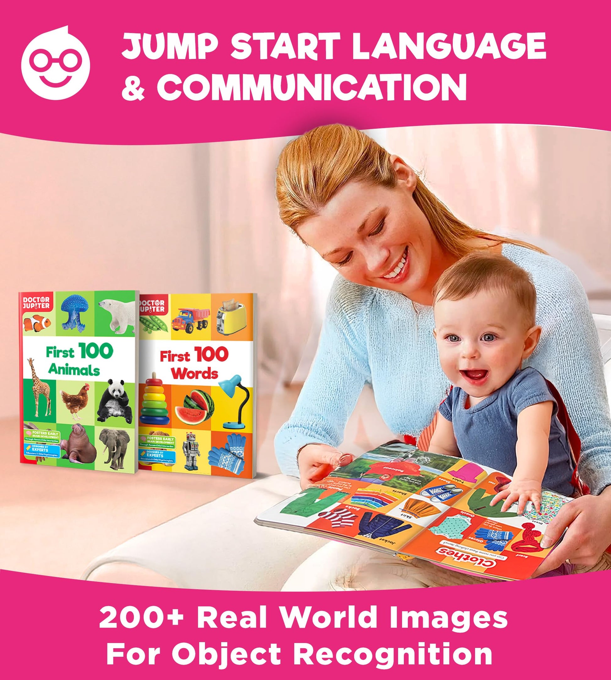 Did you know 90% of brain development happens before age 6? Parents play a vital role in this growth through simple activities like talking-naming objects, asking questions, and describing actions. These everyday interactions, combined with reading and skill-based play, have a big impact on early development. Thats why Doctor Jupiters Early Learning products are designed to strengthen parent-child bonding and build essential skills. Created by educators and child psychologists, our kits make early learning fun and easy! With Doctor Jupiters My First Box of Learning, toddlers can discover essential skills through hands-on play! Perfect for ages 1-3, this set includes 2 sets of 16 colorful flashcards with rings to hold them together, 2 real-life picture board books, and a busy board game with 8 tokens. Every element is thoughtfully crafted to spark curiosity and promote learning through play. Give your little one a head start with toys designed for fun and brain development!