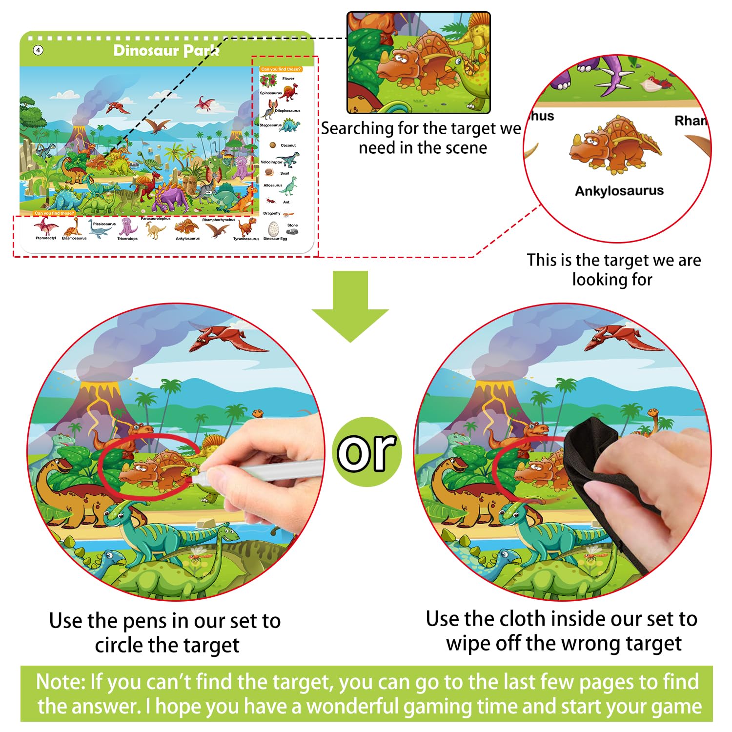View compareElfew Search And Find Book For Kids Ages 4-6,3-8, Reusable Activity Mats With 2 Dry Erase Markers 24 Themes Activity Book,Educational Toys For 3+ Year Old