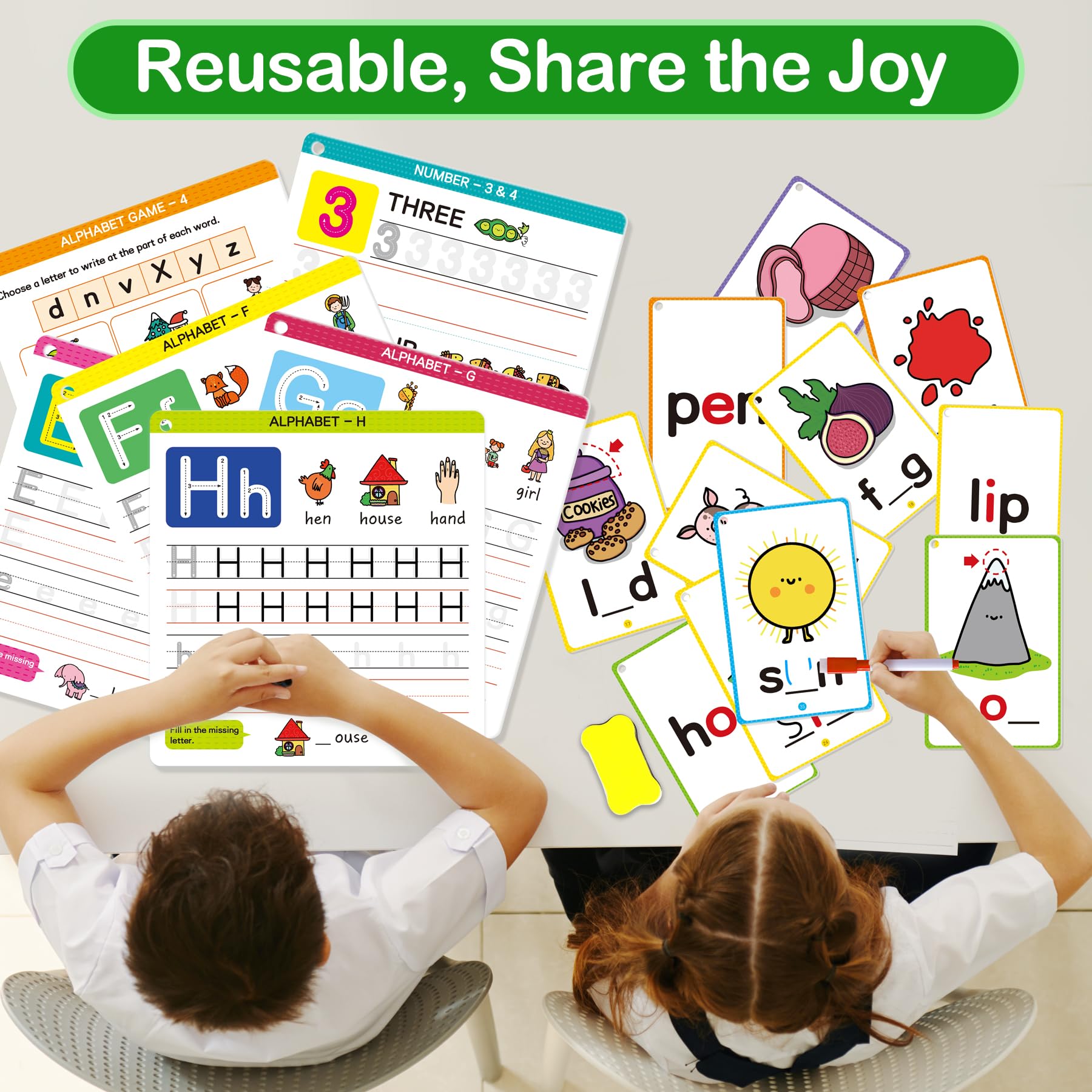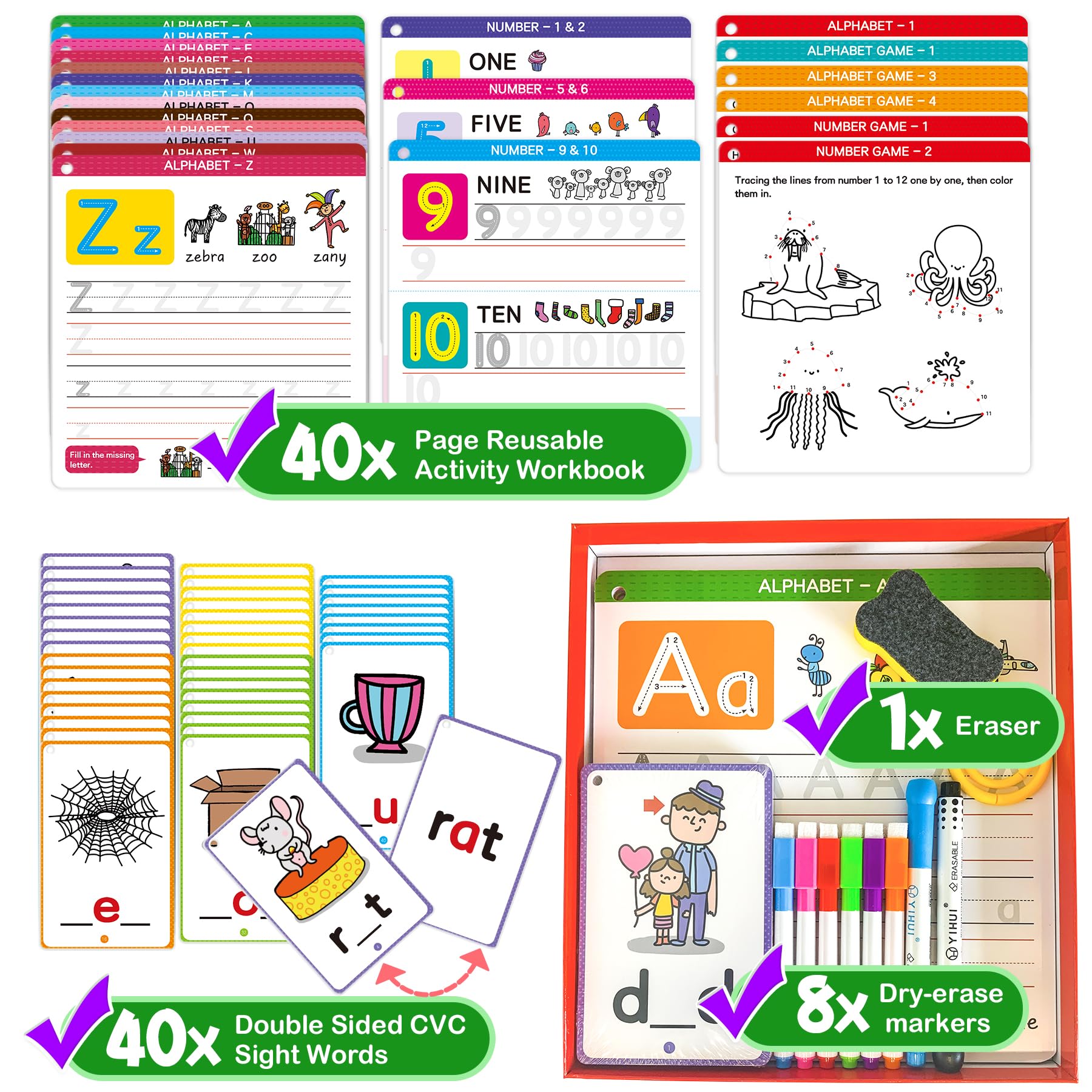 Elitepanda Cvc Word Games & Preschool Learning Kit For 3,4,5,6 Year Olds | 60 Reusable Dry Erase Flash Cards, Kindergarten Workb