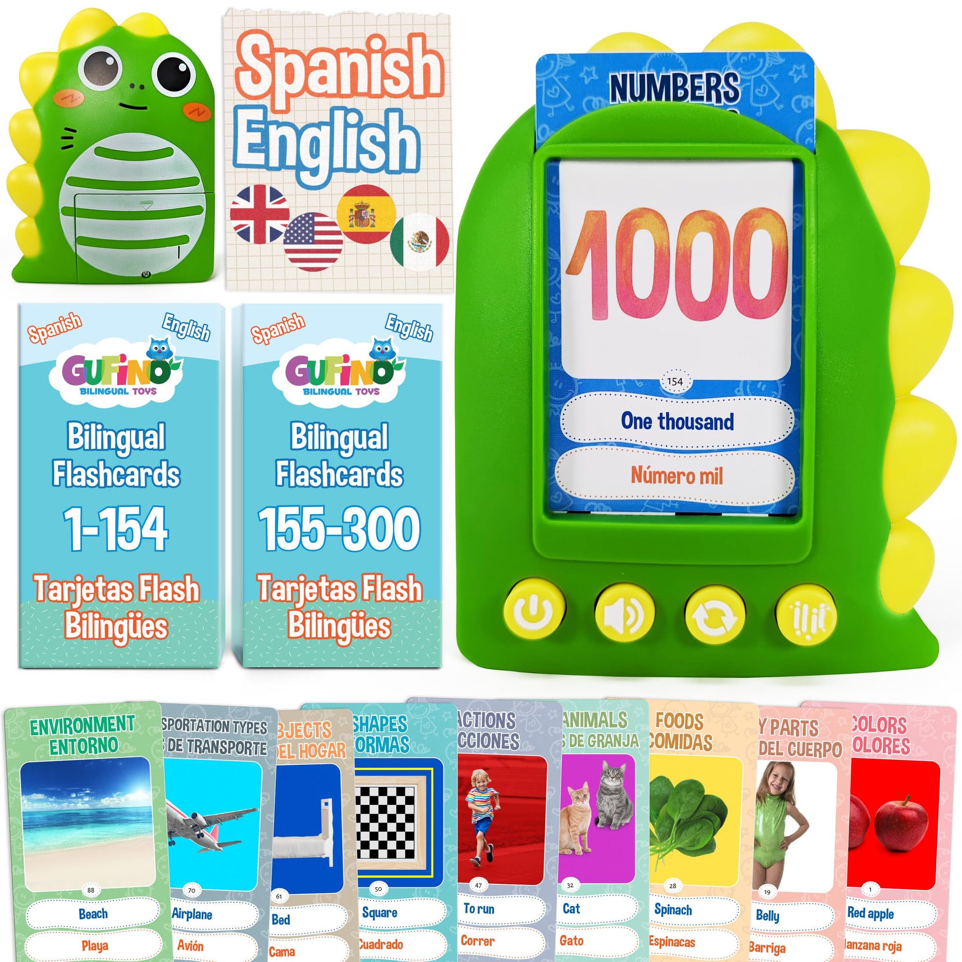 Gufino Talking Flash Cards For Toddlers – 300 Fun And Interactive English & Spanish Flash Cards To Strengthen Cognitive Abilities & Boost Language Development – Learning Toys For Quality Family Time