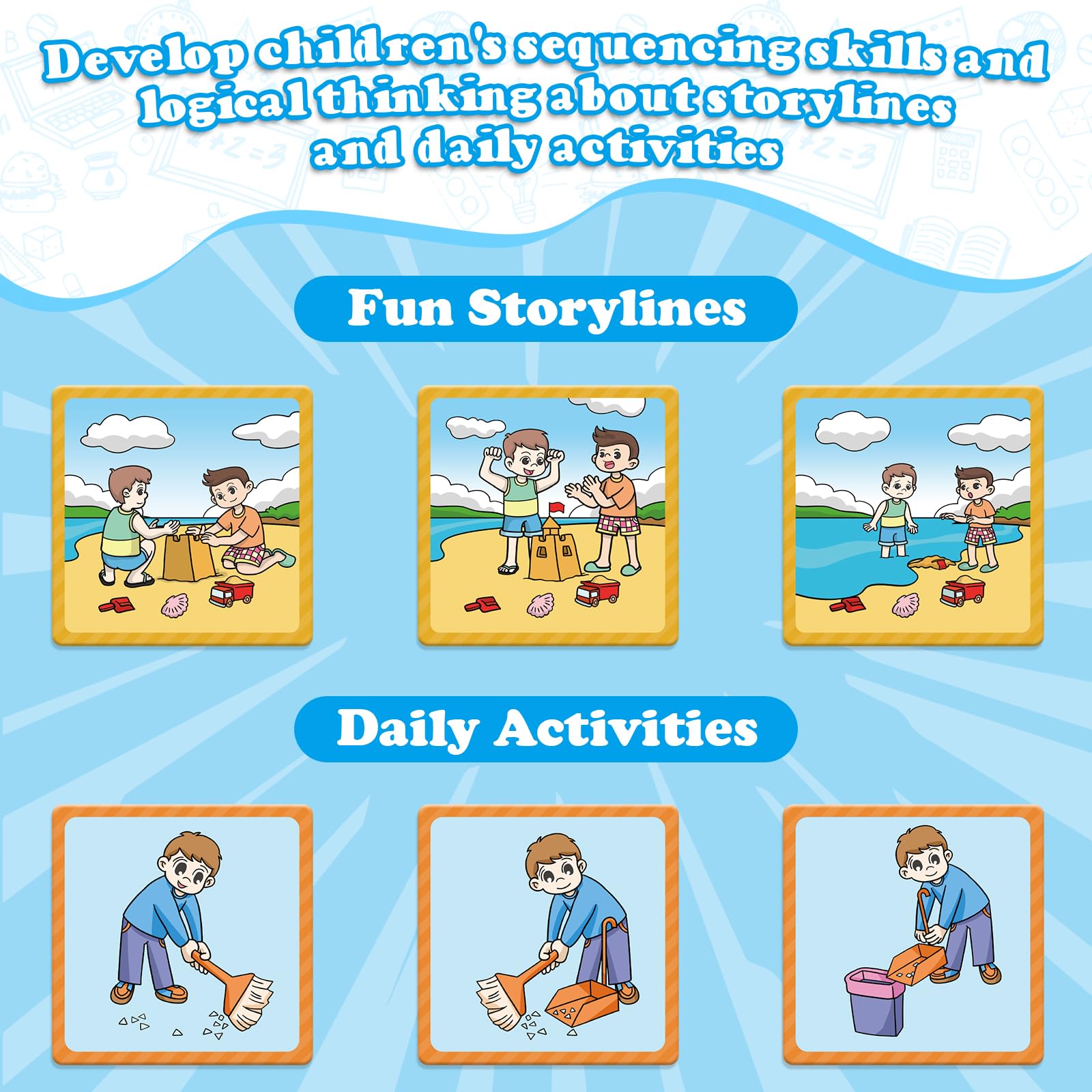• Q: How can I use these cards to support my child's social skills development? A: These sequencing cards can be used as a social skills game, encouraging children to interact while playing, which helps enhance their social emotional development through engaging storytelling and collaborative play.