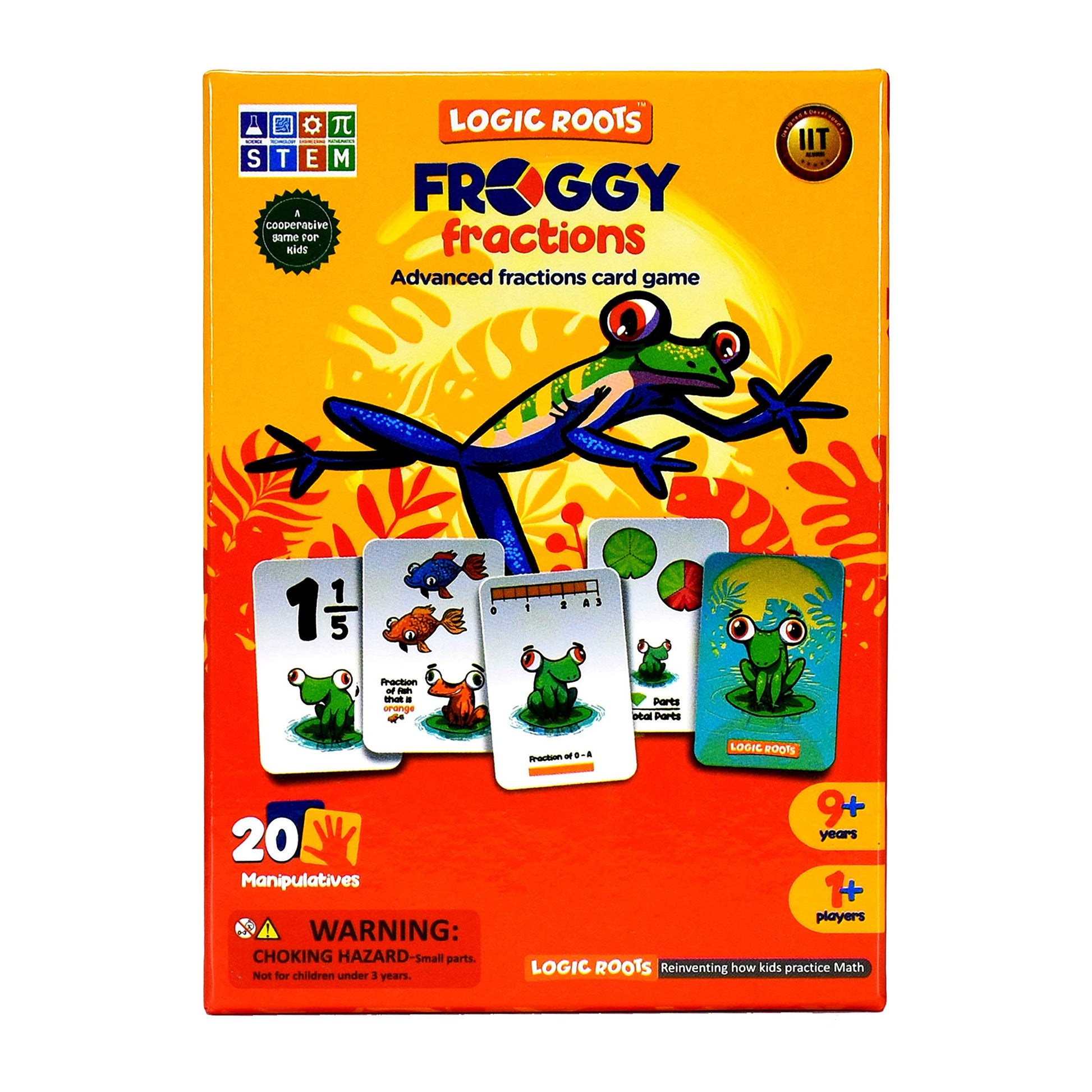 Once Upon A Timeget Cracking With Croaking Frogs In Froggy Fractions Card Game. A Lot Is At Stake In The Frog World. The Winner Gets To Choose The Coziest Corner Of The Pond.Join Hands With These Smart Frogs In This Fractions-Strategy Game. Be Aware That Other Frogs Will Not Make It Easy For You. So Get Croaking!Math Skills• Reducing Fraction To Simplest Form• Identification Of Fractions• Fraction Operations• Equivalent Fractionsother Skills• Strategic Thinking• Spatial Recall• Group Dynamics• Cognitive And Developmental Skillspractice Jump12 Times Over Class. Kids Will Practice More Equivalent Fractions In 1 Game Play Then In The Entire Text Book In 1 Year.At Logic Roots, We Are Passionate About Math And Work With The Vision Of Reinventing How Kids Practice Math Through Gamification Of Its Concepts. Our Board Games, Card Games And Apps Are Widely Used By Top Schools And Homeschooling Parents To Help Their Boys And Girls Fall In Love With Math. These Games Are Best Used For Learning, Education And Gifting Purposes For Children.Target Groupgrade 4 And Above || 9 Years And Abovehow To Playup To 5 Players Can Enjoy Froggy Fractions At The Same Time. Shuffle And Give 4 Cards To Each Player. Keep 1 Card Face Up And Start Playing. Your Objective Is To Make The Equivalent-4 Set Of Cards Before Anyone Else Does. The Game Has Been Designed To Give You More Fun And More Fractions Practice In 1 Game Than In The Entire Math Text Book In 1 Full Year!Contents Of The Box• 40 Thick And Glossy Cards• 1 Instruction Book• 4 Write And Wipe Logic Slates• 4 Sketch Pens• 1 Game Themed Wall Poster