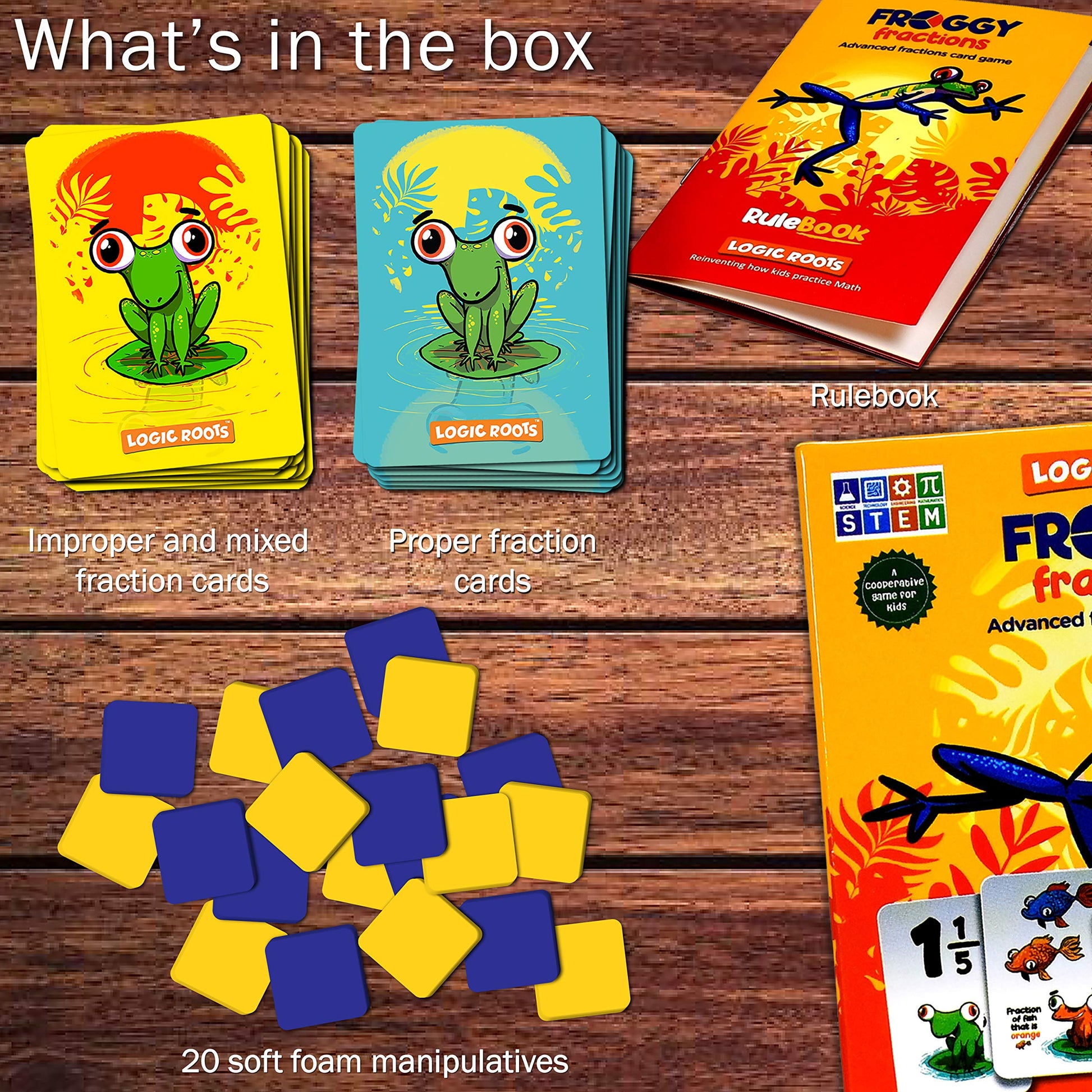 Logic Roots Froggy Fractions Math Games For Fourth Grade And Up, 24 Fraction Manipulatives 72 Proper, Improper, And Mixed Fractions Card, Stem Toys For 10 Year Olds And Up