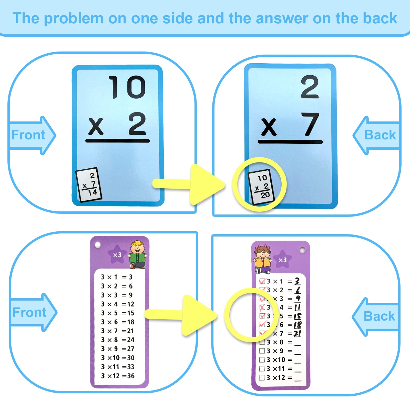 Limque 1-12 Math Flash Cards with 5 Dry Erase Pens, 15Pcs Big Multiplication Flash Cards + 36 Pcs Random Double-sided Multiplication Practice Cards - Answer on Back, Math Game Flash Cards, Educational Math Flashcards for Kids Ages 3+
