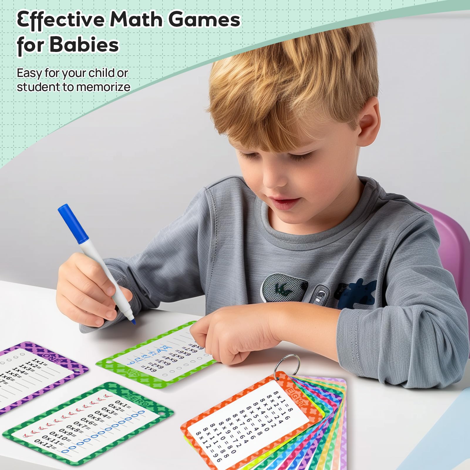 - Q: Are the multiplication flashcards reusable? A: Yes, the multiplication flashcards are made of coated paper with double-sided lamination, making them waterproof and tear-resistant. You can easily wipe them clean with a wet paper towel and reuse them for repeated practice.