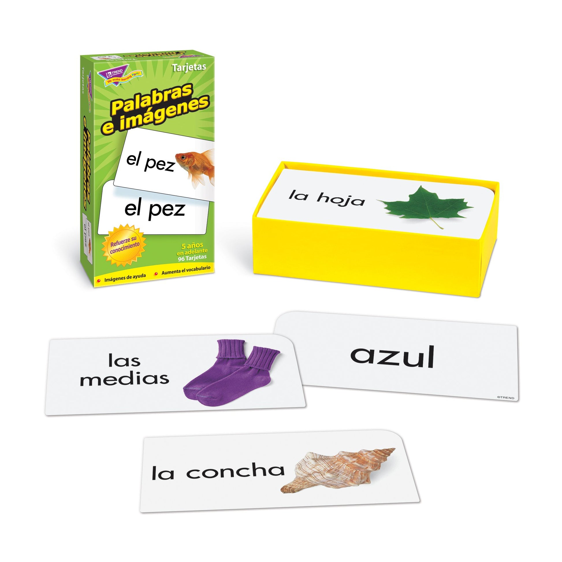 Content-rich picture word cards in Spanish do their job, teaching students new skills in a fun way. This educational aid is ideal for anyone learning to read. From Dolch and Fry Instant Words lists. Photos for real-life learning. Word on front; word with picture on card back. Sturdy cards and storage box. Students will delight in mastering new skills. No-see-through cards with quick-sorting, rounded corners. 96 cards, 3 X 6.