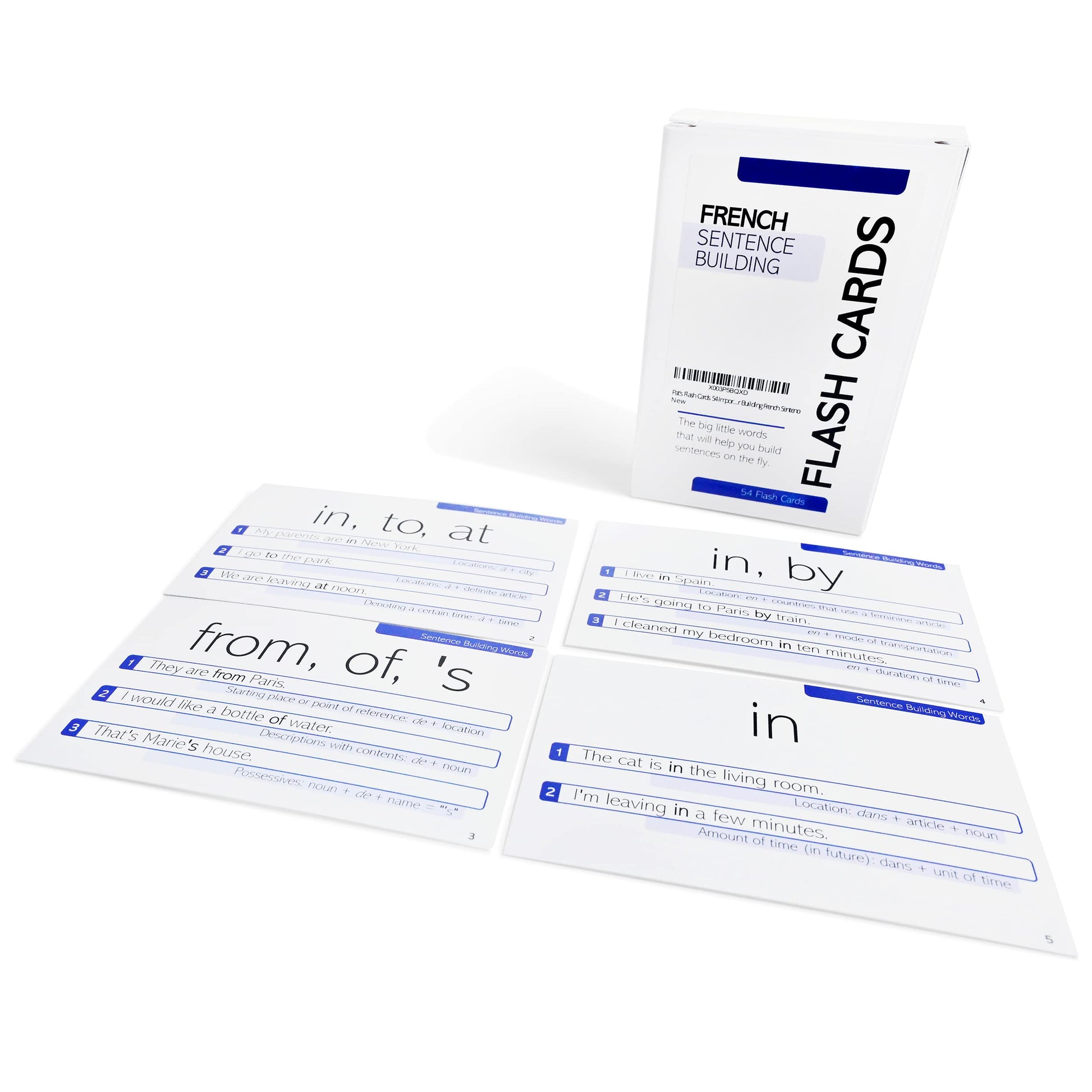 - Q: What are Pat's Flash Cards designed for? A: Pat's Flash Cards are specifically designed to help learners build French sentences by mastering 54 important prepositions and other tricky words that can change meaning based on their position in a sentence.