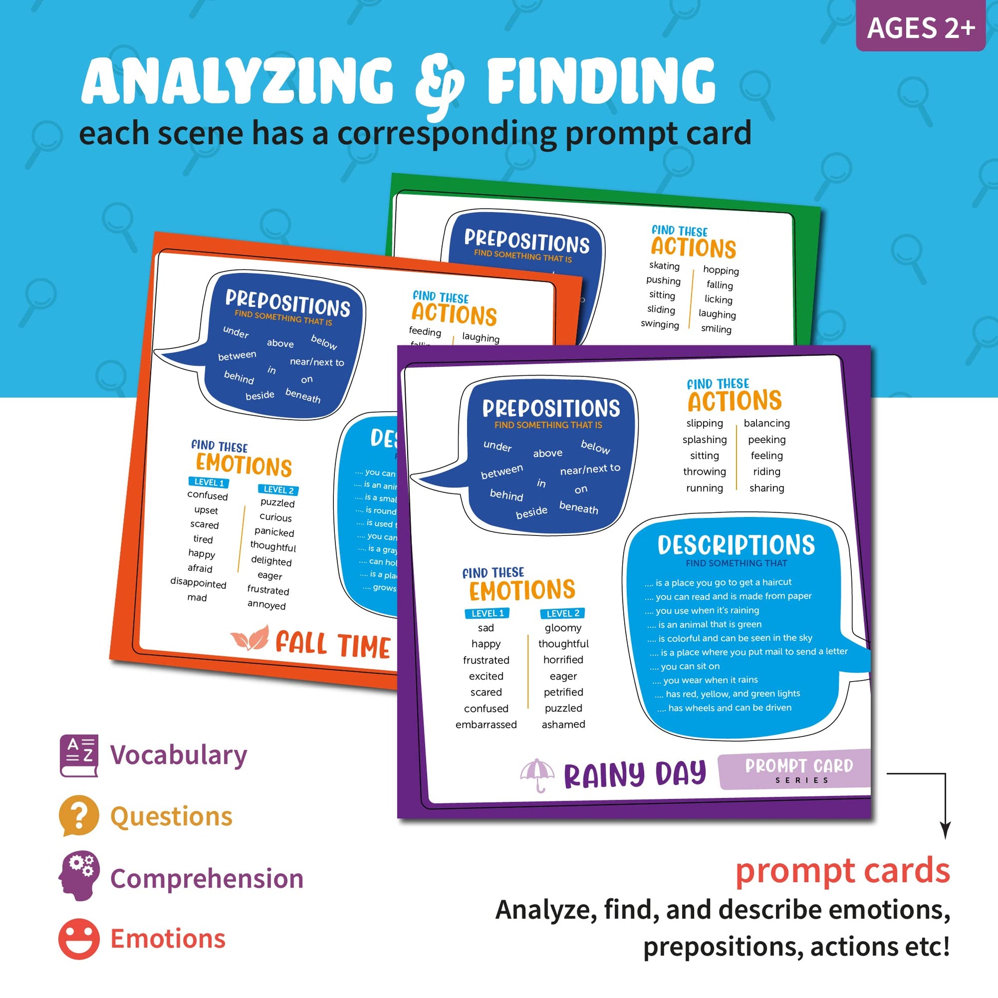 - Q: How can these cards help improve my child's language skills? A: These cards feature WH questions that encourage children to think critically about emotions and scenarios, aiding in language development, sentence building, and storytelling.