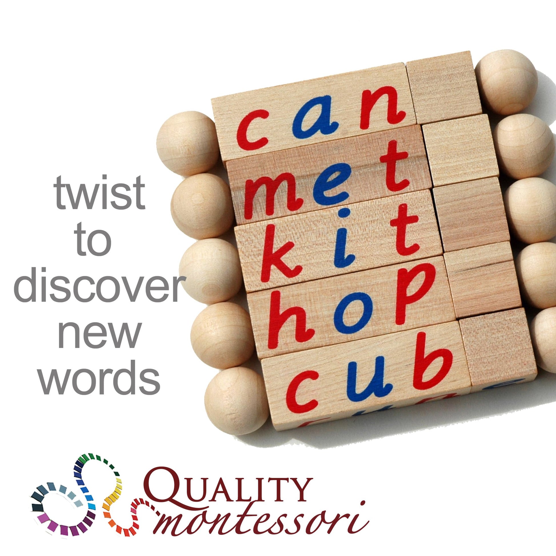 - Q: How many words can my child learn with these blocks? A: The set includes 5 dowels representing all 5 vowels, allowing children to create a total of 20 phonetic CVC words and 20 long vowel CVC-e words, all of which are found in the dictionary.