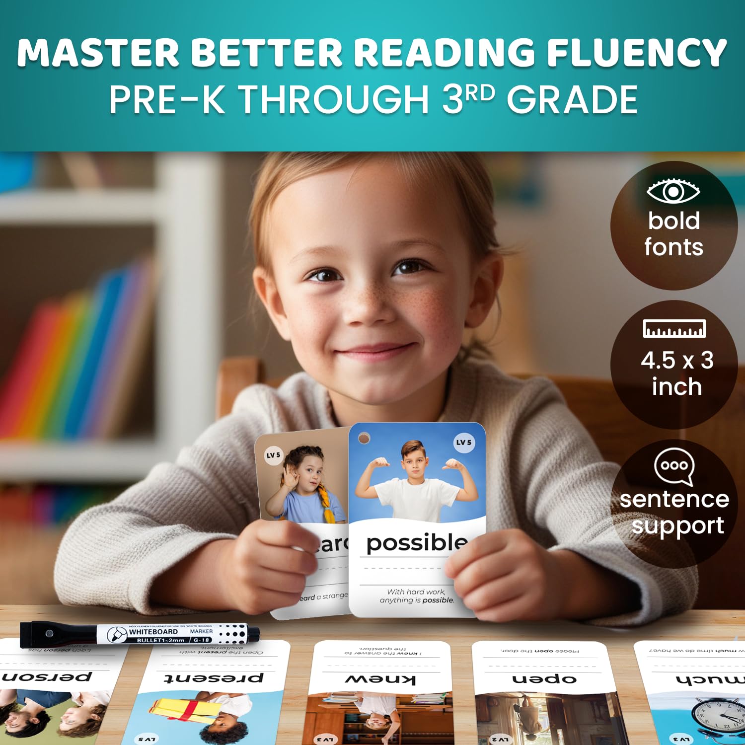 Quokka 520 Sight Words Flash Cards For Kids Adults - From Pre-K To 3Rd Grade - 5 Levels & Bold Font & Jumbo Size & Dry Erase Car