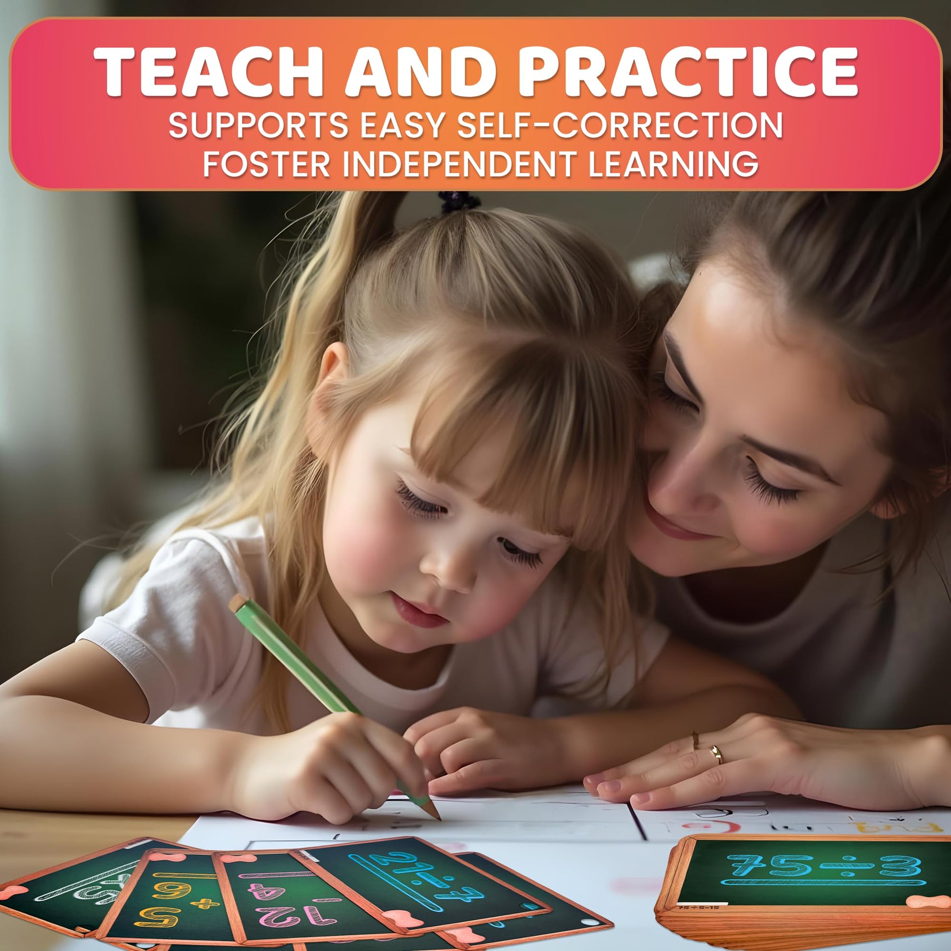 - Q: How can these flashcards help with math learning? A: These flashcards facilitate effective learning through self-checking, as each card features math facts on the front and solutions on the back, helping kids master addition, subtraction, multiplication, and division.