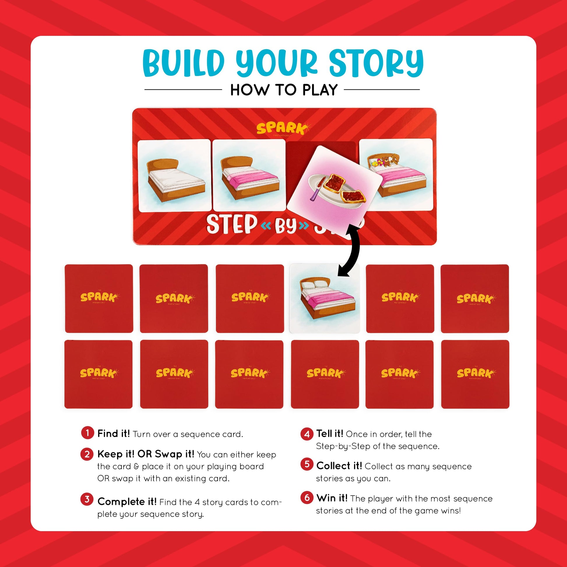 - Q: What age group is the SPARK INNOVATIONS Sequence Board Game suitable for? A: The SPARK INNOVATIONS Sequence Board Game is adaptable for all ages, making it suitable for preschoolers, children in elementary school, and even older kids. It is an excellent resource for teachers, speech therapists, homeschoolers, and parents looking to improve language skills through play.