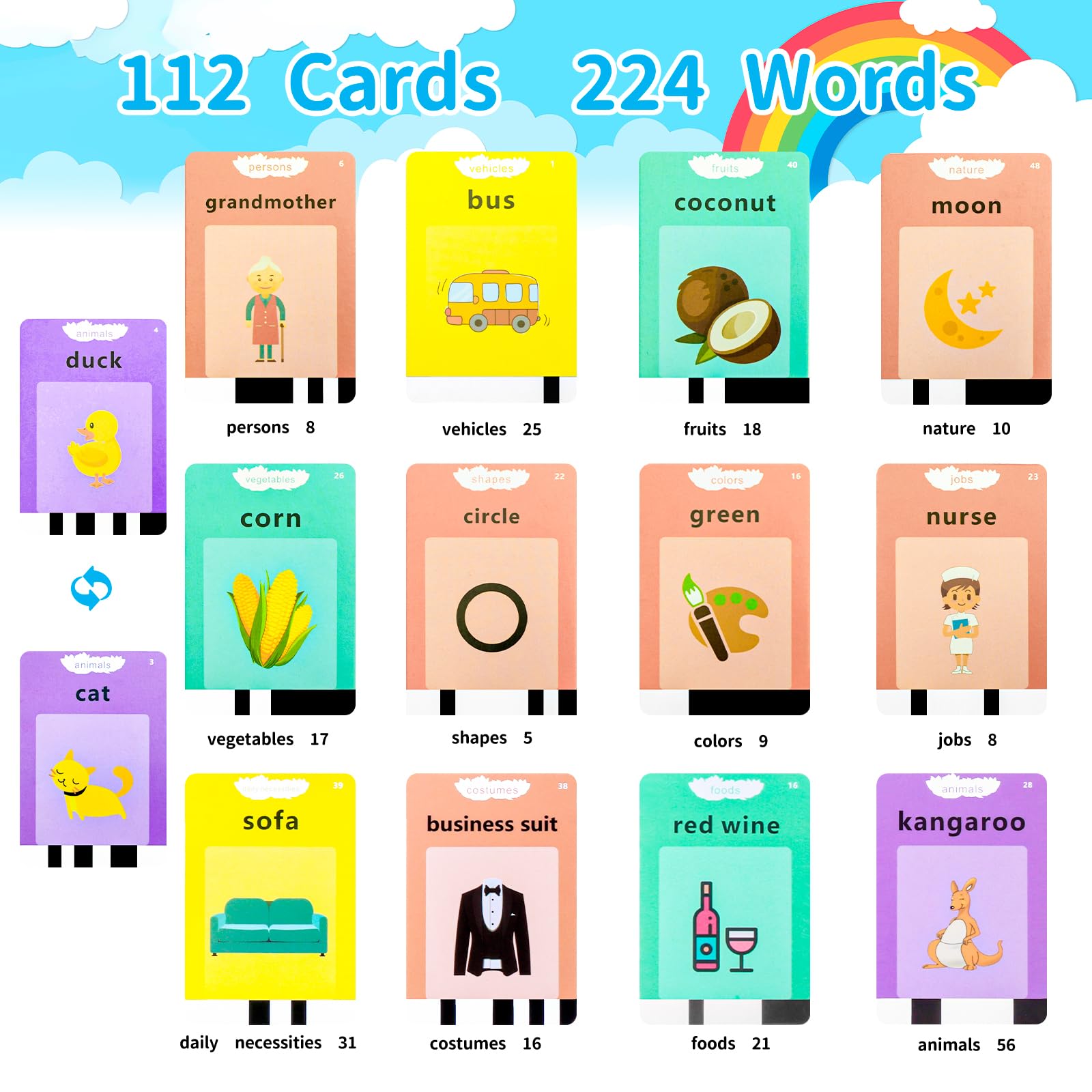 • Q: How does the interactive design of these flash cards enhance learning? A: The interactive design allows children to learn basic words and sounds through engaging play, making the educational experience fun and effective.