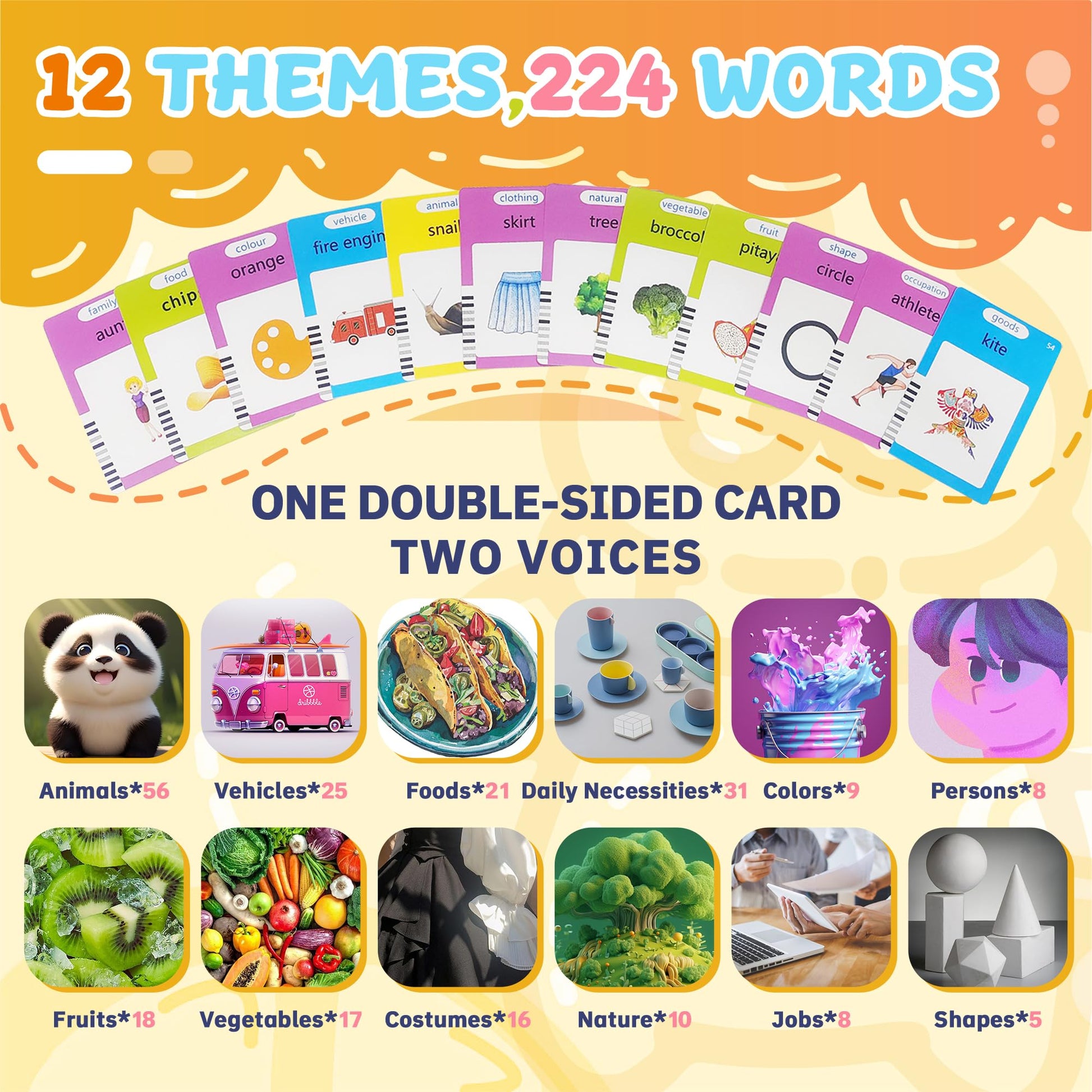 Toddlers Talking Flash Cards, Baby Learning Cards with 224 Sight Words, Educational Gifts for Toddler 3-12 Year Old Boys and Gir