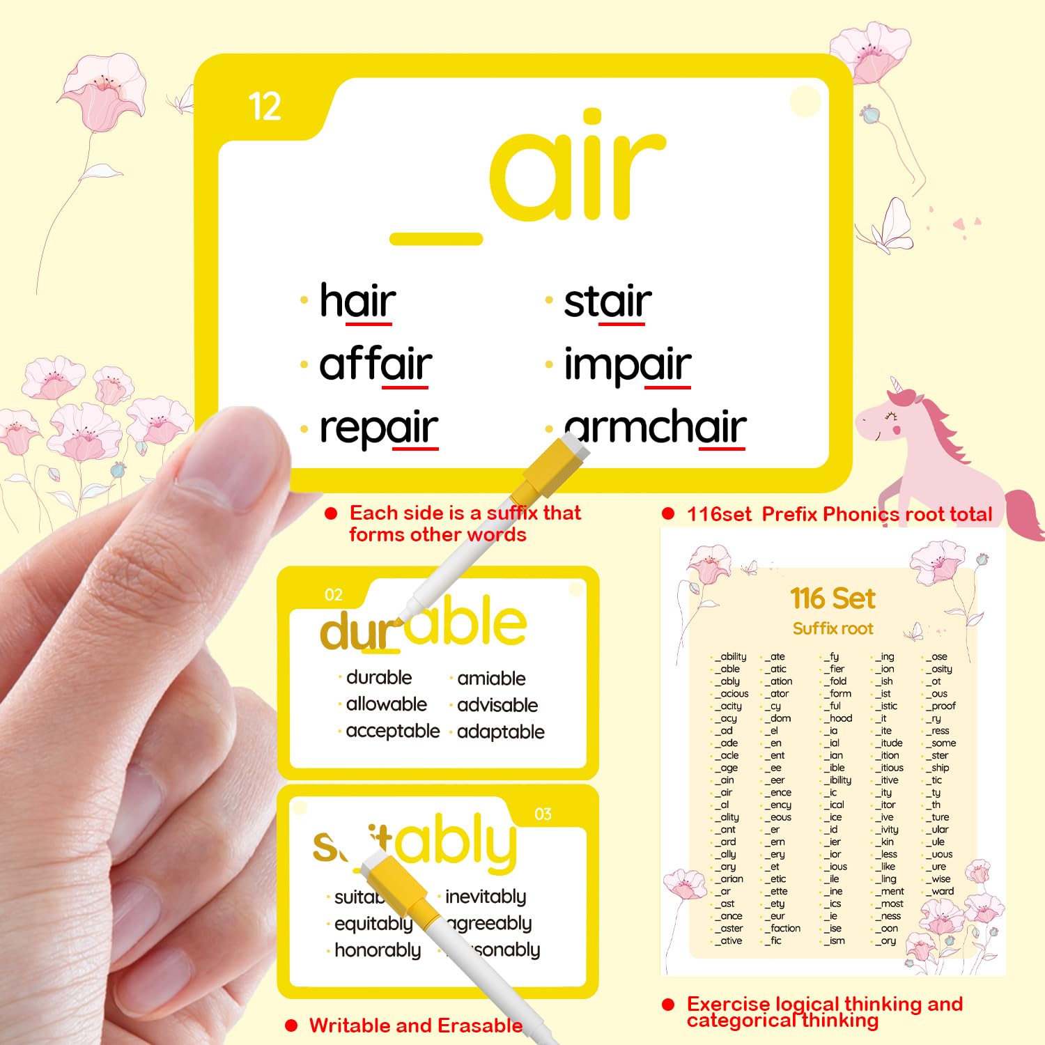 Wjpc 116 Set Phonics Suffix Words Flash Cards,Sigh Words Flash Cards, Phonics Flash Cards For 7,8,9,10,11,12 Years 2Nd, 3Rd, 4Th, 5Th Grade Boys&Girls&Kids Learning Writing Reading
