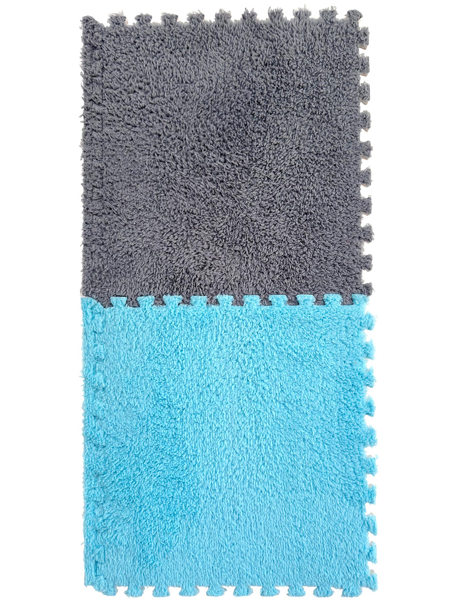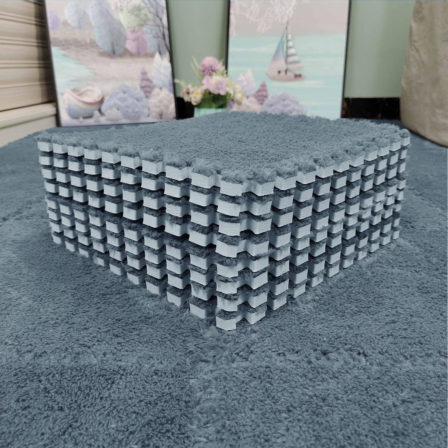 16 Pcs Eva Foam Square Interlocking Plush Carpet Tiles - 12''X12'', 16Sq,Ft Children Exercise Crawling Play Mat Protective Floor Tiles Soft Shaggy Area Rugs For Kids Room, Parlor, Bedroom(Grey+Blue)