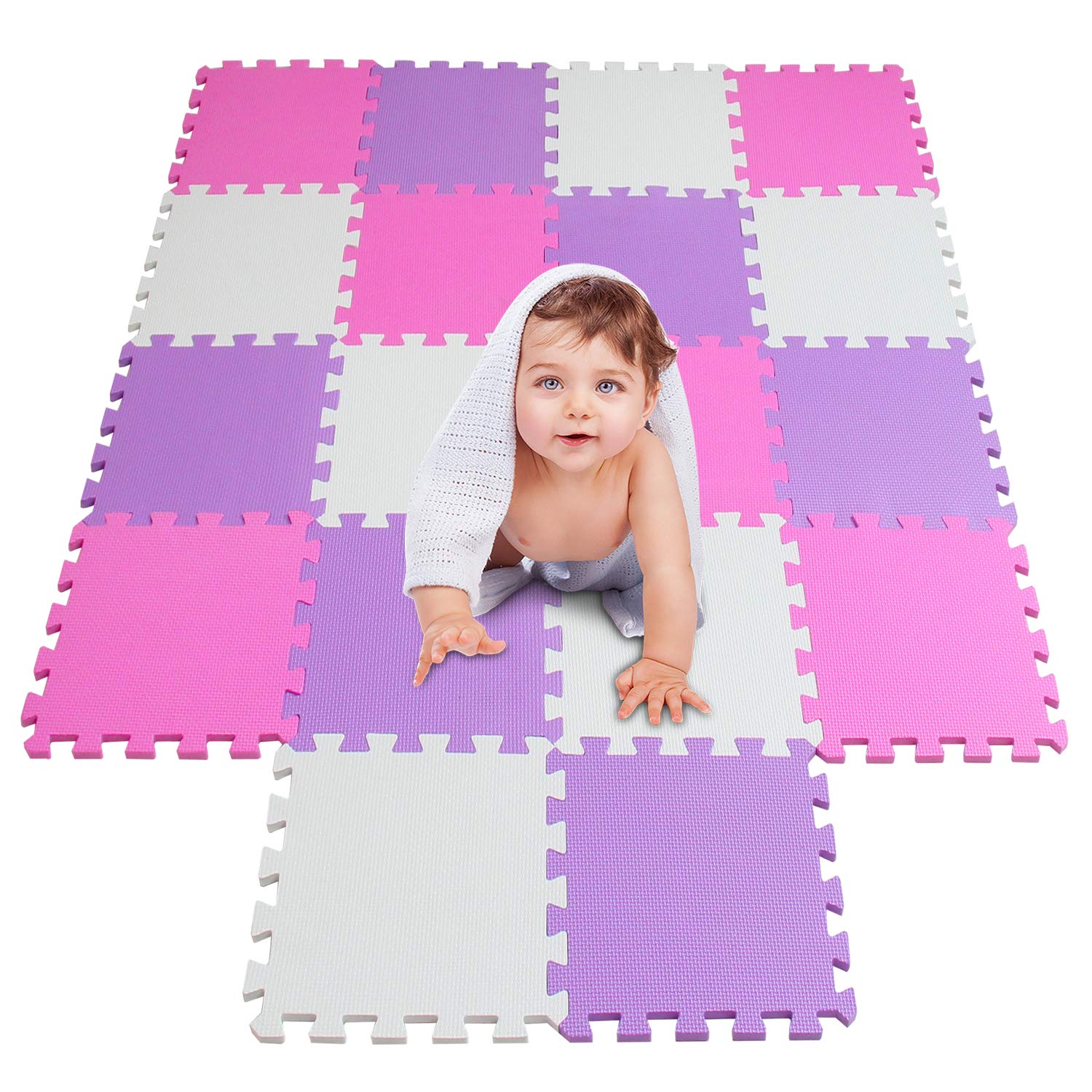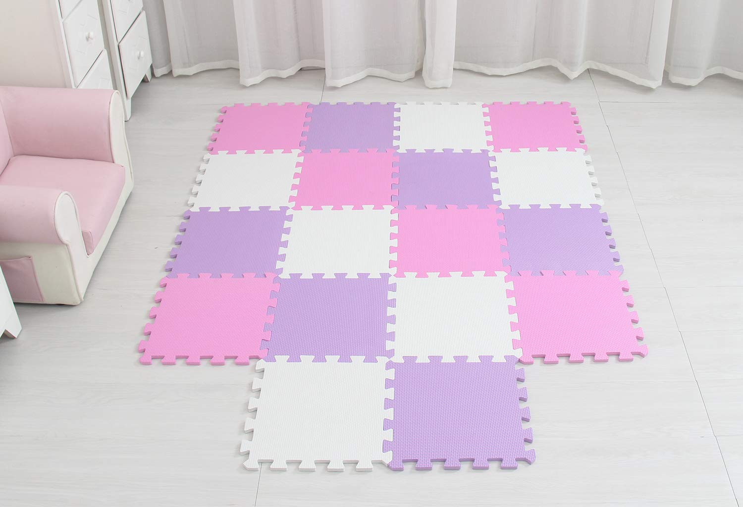 Free Combination - Different Color tiles can be arranged into stripes or the chess styles. | Playmat Size - Each Tile = 11.8''x11.8''x0.4'' (30x30x1cm), Assembled Mat Size = 55.9''x44.9''x0.4'' (142x114x1cm). | Safety and Premium - Our mat has passed the US CPSIA test, it is no smell, no BPA, no Phthalates, no Lead, no Formaldehyde. | For Hard Floor Surface - The mat protects baby's knees, spine, hips and elbows on hard floor, also protects floor from damage. | Easy Clean and Assemble - Easy to clean with damp cloth. Interlocking feature and lightweight make it very simple to assemble.
