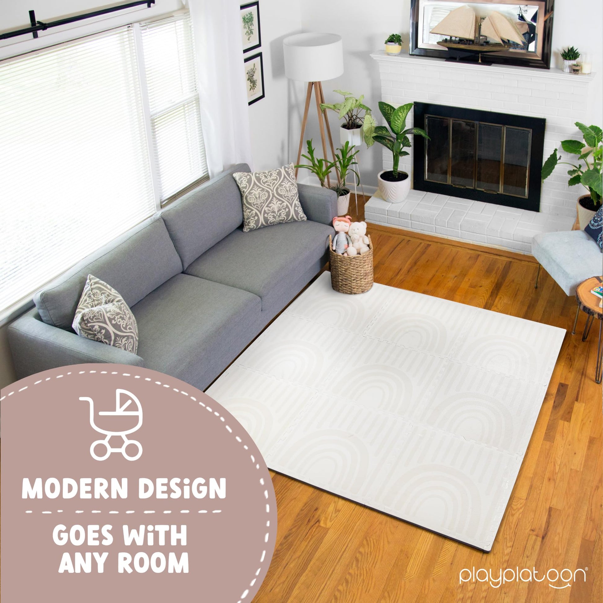 Play Platoon Non-Toxic Large Kids Play Mats For Floors, 9 Tile 72 X 72 Inch - Extra-Thick Interlocking Comfortable Cushiony 24 X 24 In. Puzzle Mat With Border, Neutral Playmat Rug For Toddlers